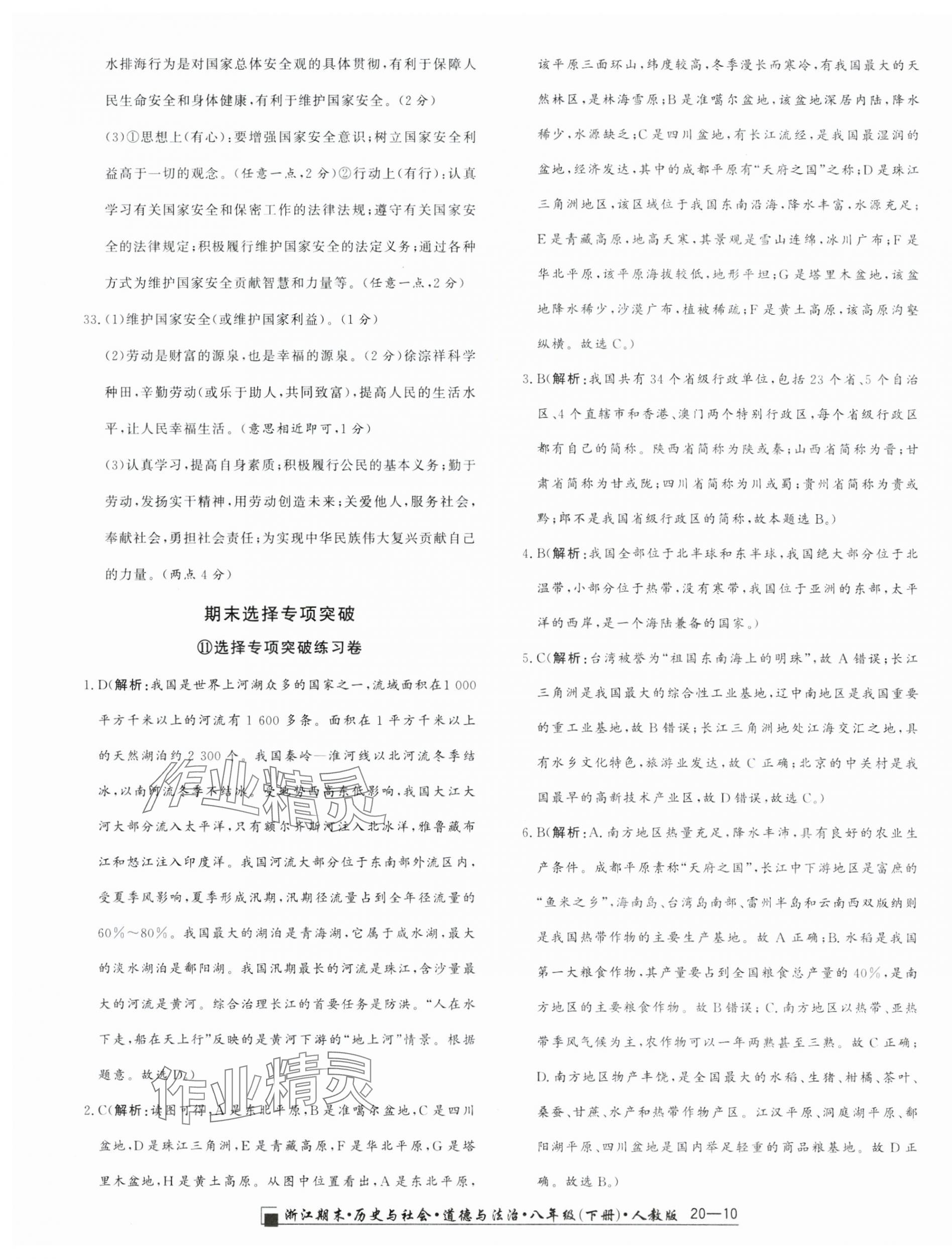 《2024年励耘书业浙江期末八年级历史与社会道德与法治上册人教版》