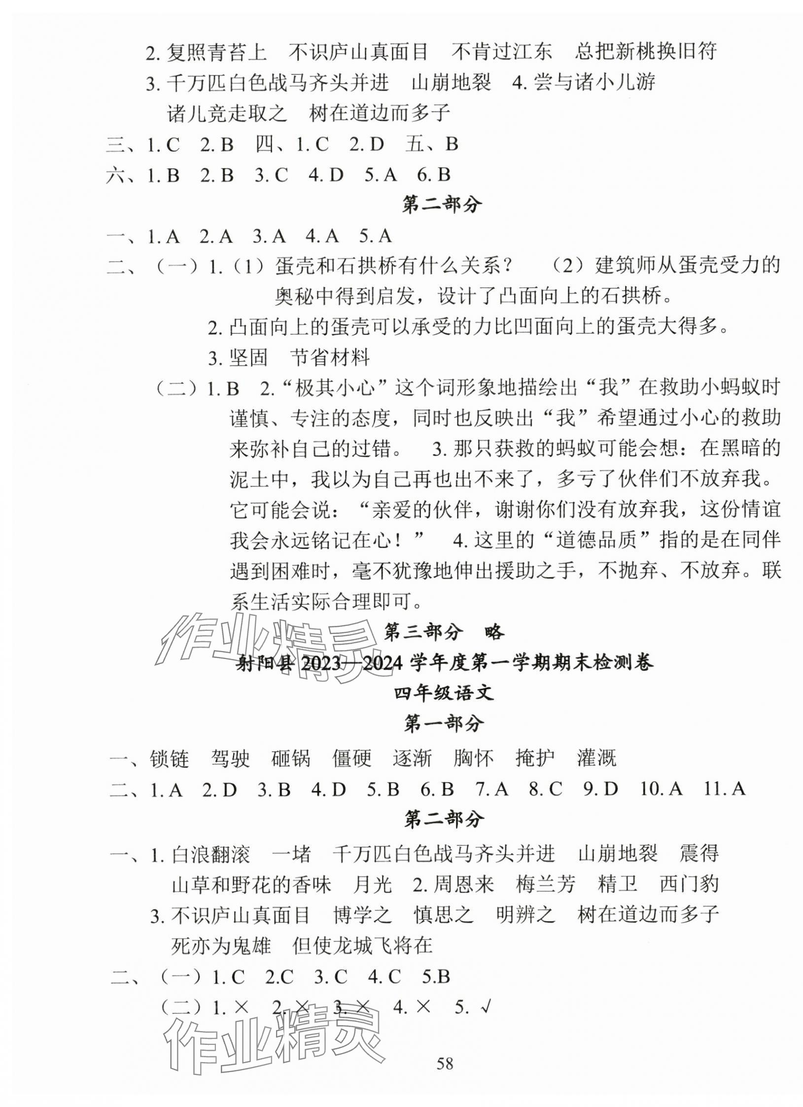 注:目前有些书本章节名称可能整理的还不是很完善,但都是按照顺序排列的,请同学们按照顺序仔细查找。练习册 2024年小学期末试卷精选四年级语文人教版 答案主要是用来给同学们做完题方便对答案用的,请勿直接抄袭。