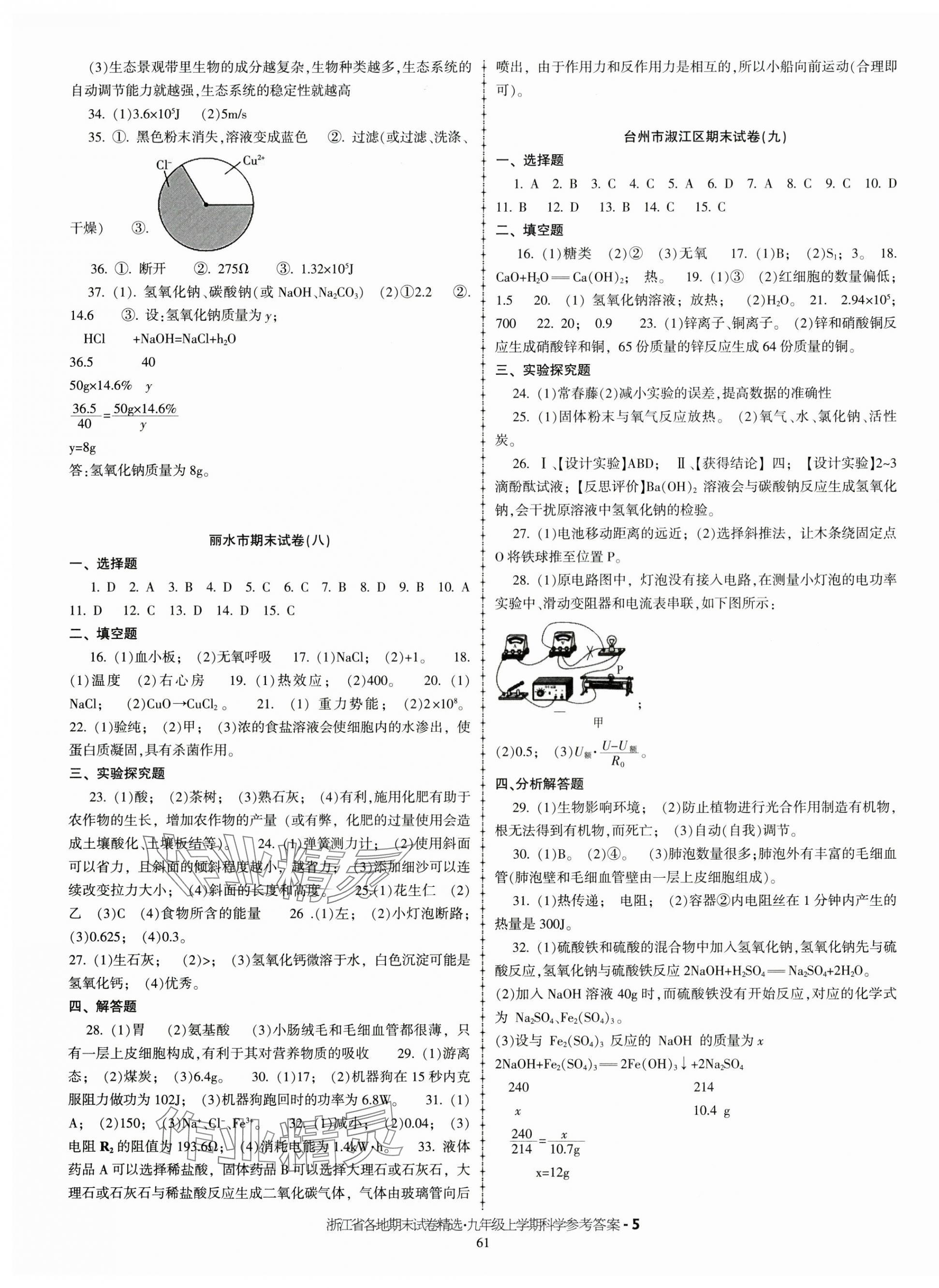 注:目前有些书本章节名称可能整理的还不是很完善,但都是按照顺序排列的,请同学们按照顺序仔细查找。练习册 2024年浙江省各地期末试卷精选九年级科学上册浙教版 答案主要是用来给同学们做完题方便对答案用的,请勿直接抄袭。