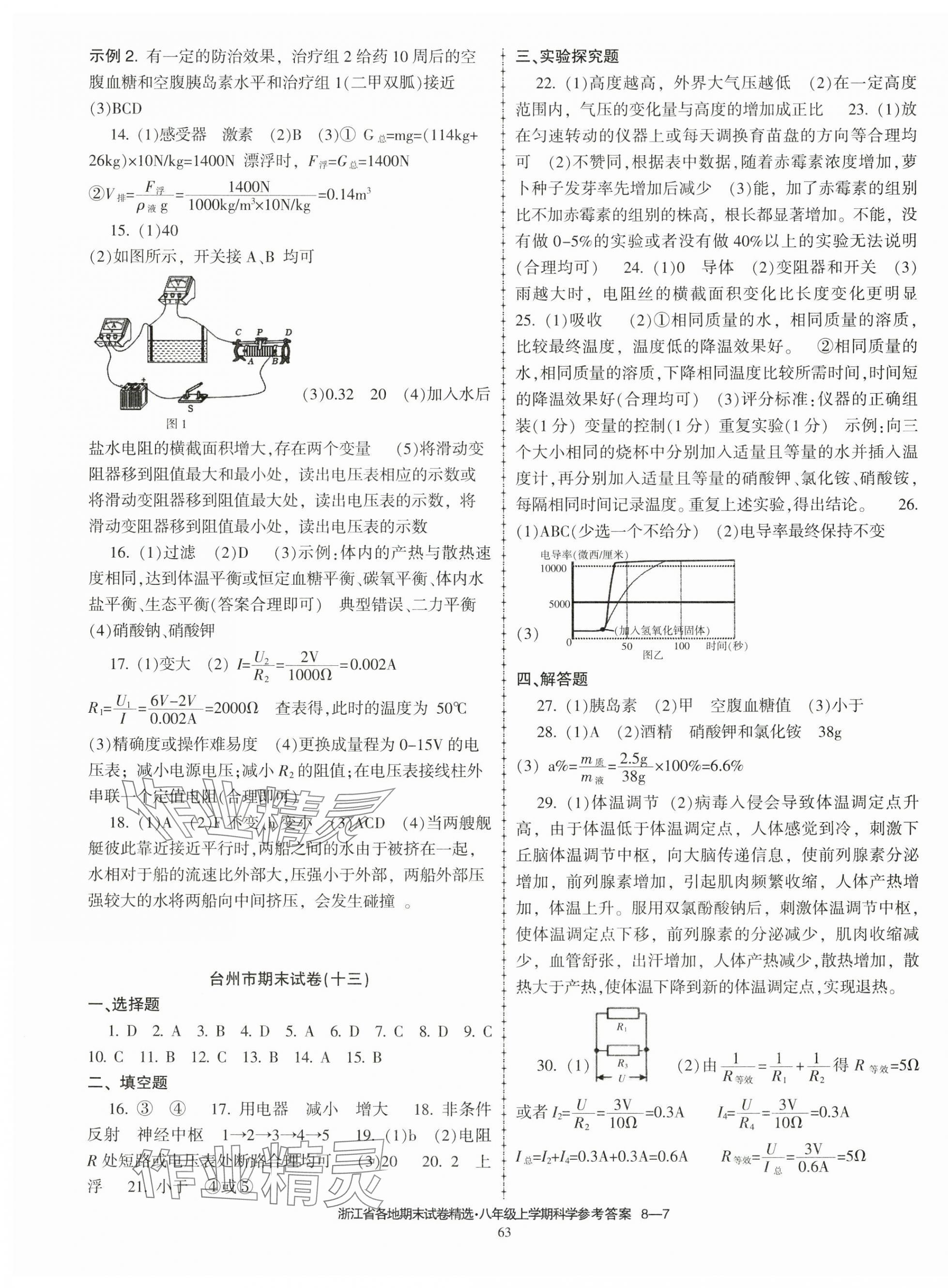 注:目前有些书本章节名称可能整理的还不是很完善,但都是按照顺序排列的,请同学们按照顺序仔细查找。练习册 2024年浙江省各地期末试卷精选八年级科学上册浙教版 答案主要是用来给同学们做完题方便对答案用的,请勿直接抄袭。