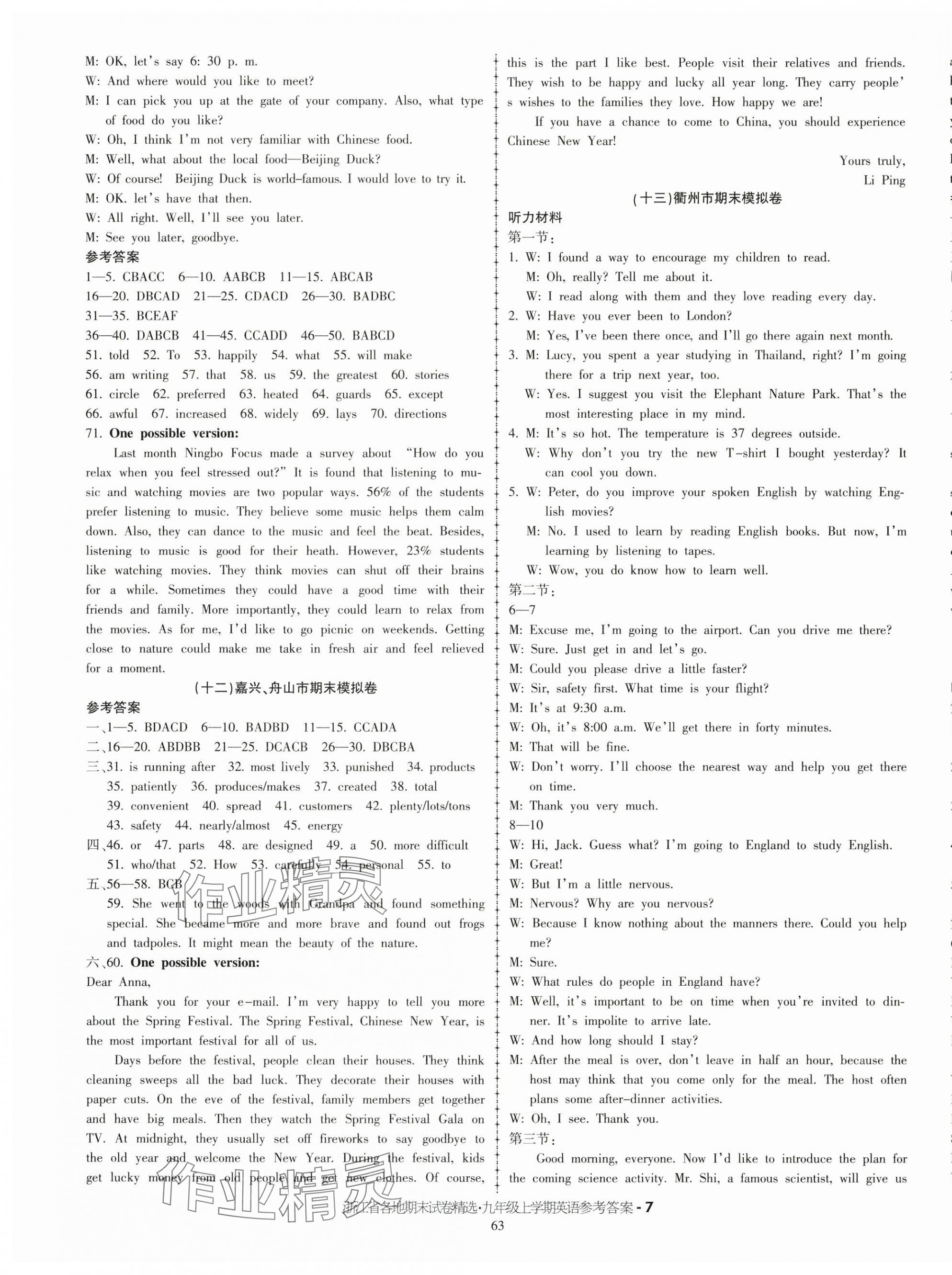 注:目前有些书本章节名称可能整理的还不是很完善,但都是按照顺序排列的,请同学们按照顺序仔细查找。练习册 2024年浙江省各地期末试卷精选九年级英语上册外研版 答案主要是用来给同学们做完题方便对答案用的,请勿直接抄袭。