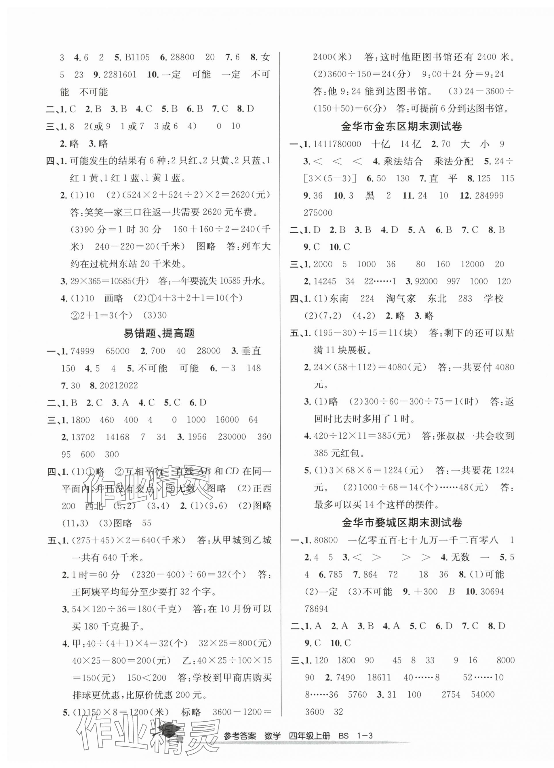 注:目前有些书本章节名称可能整理的还不是很完善,但都是按照顺序排列的,请同学们按照顺序仔细查找。练习册 2024年期末直通车四年级数学上册北师大版 答案主要是用来给同学们做完题方便对答案用的,请勿直接抄袭。