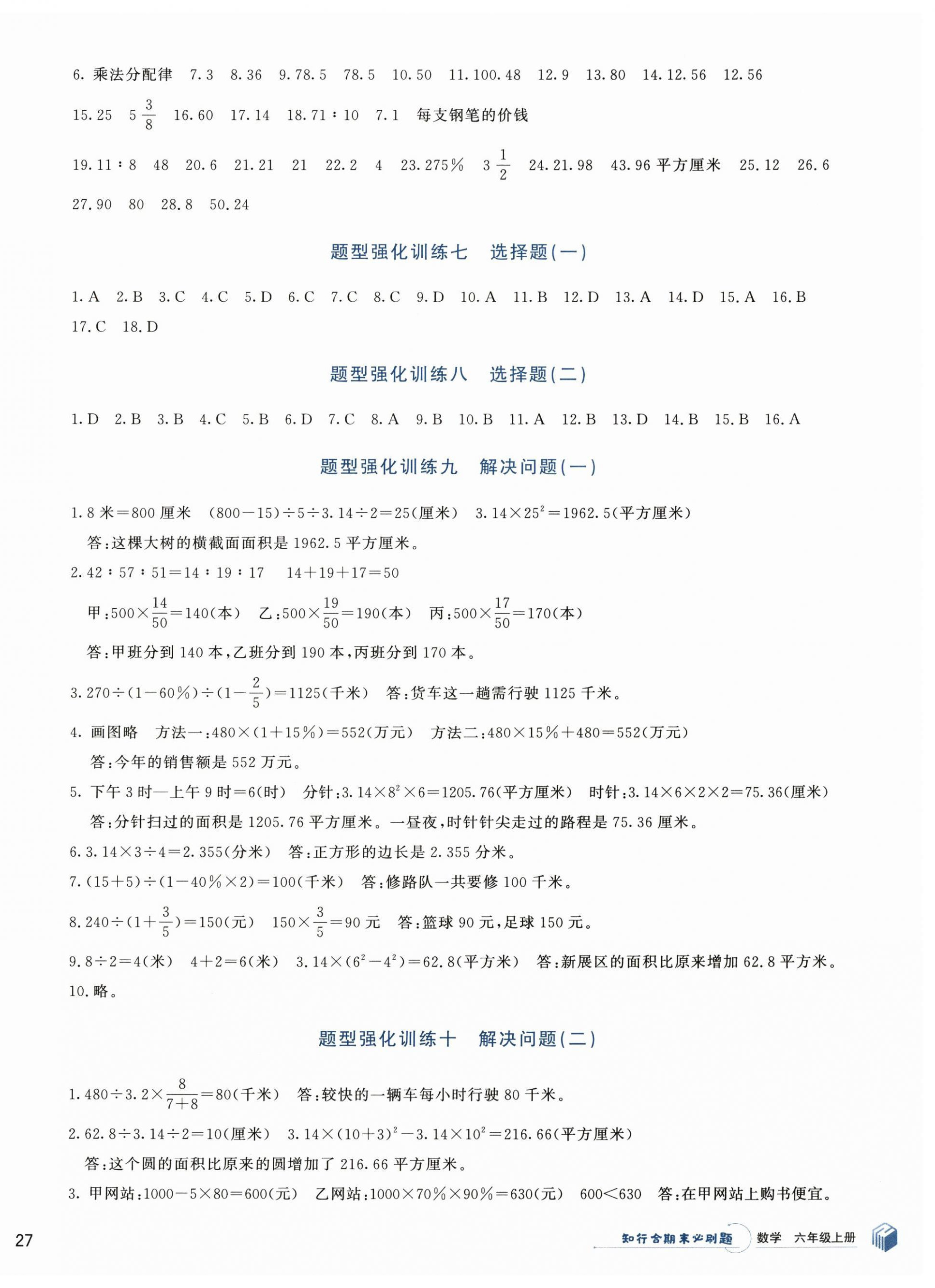 注:目前有些书本章节名称可能整理的还不是很完善,但都是按照顺序排列的,请同学们按照顺序仔细查找。练习册 2024年知行合期末必刷题六年级数学上册北师大版 答案主要是用来给同学们做完题方便对答案用的,请勿直接抄袭。