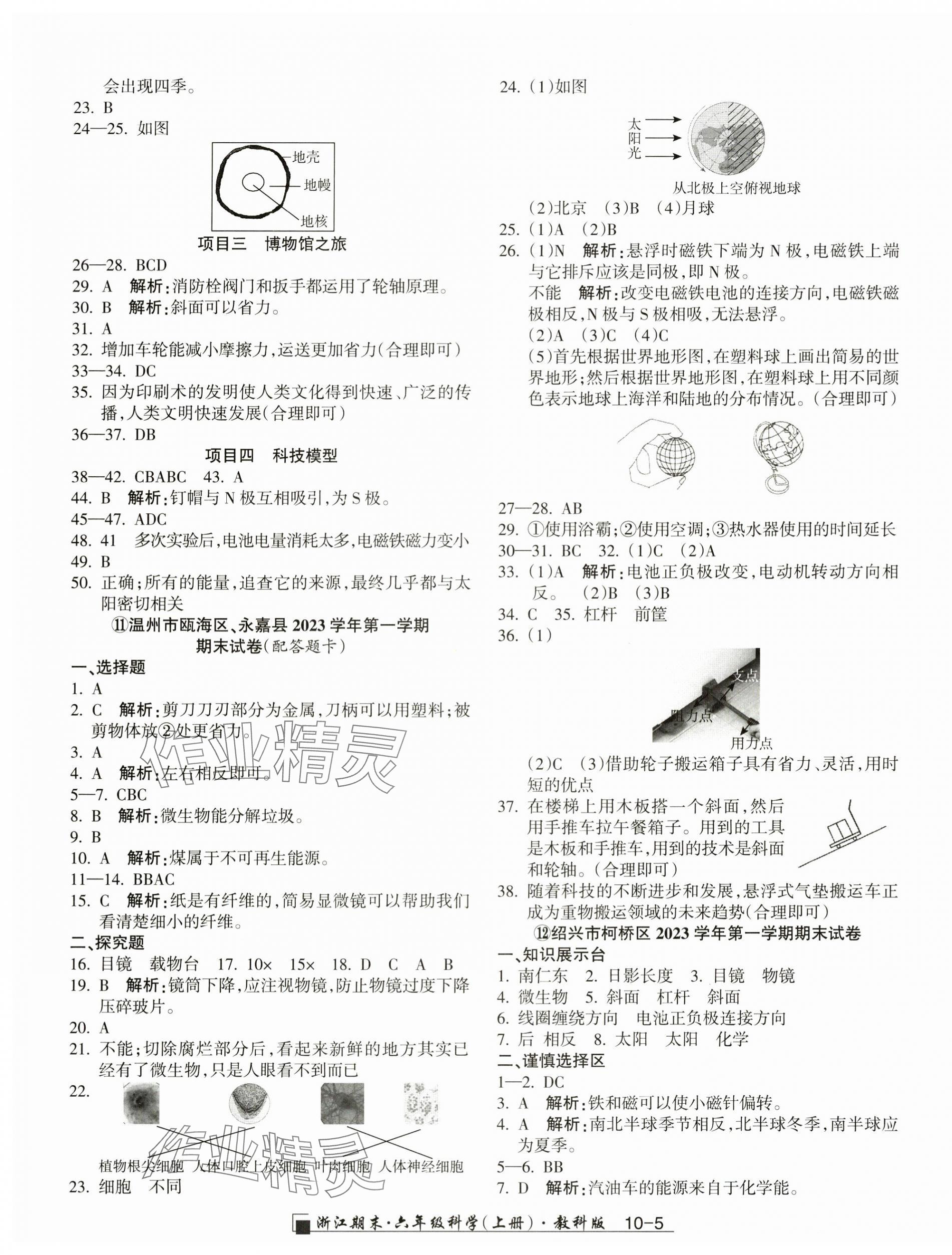 注:目前有些书本章节名称可能整理的还不是很完善,但都是按照顺序排列的,请同学们按照顺序仔细查找。练习册 2024年励耘书业浙江期末六年级科学上册教科版 答案主要是用来给同学们做完题方便对答案用的,请勿直接抄袭。