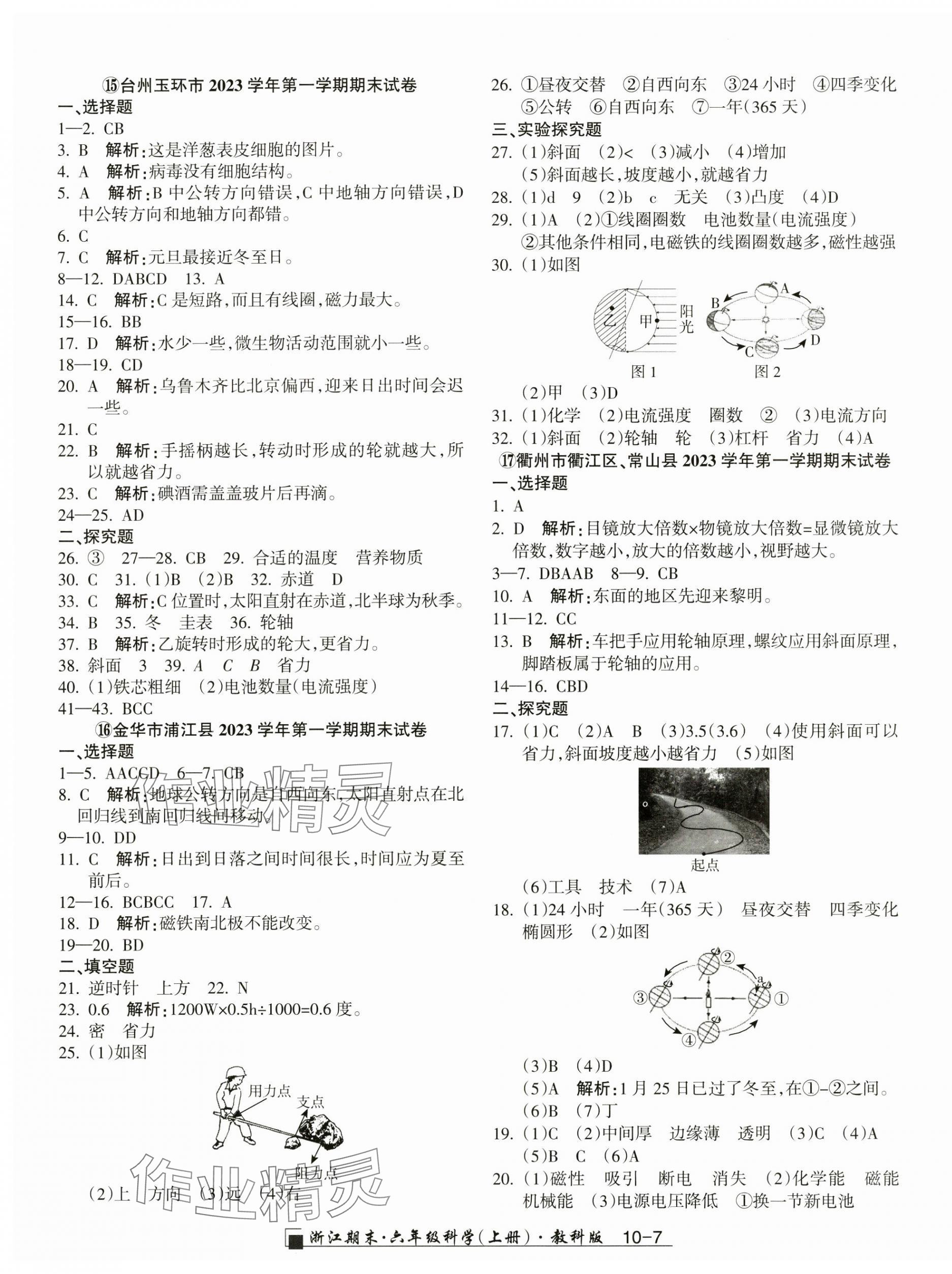 注:目前有些书本章节名称可能整理的还不是很完善,但都是按照顺序排列的,请同学们按照顺序仔细查找。练习册 2024年励耘书业浙江期末六年级科学上册教科版 答案主要是用来给同学们做完题方便对答案用的,请勿直接抄袭。