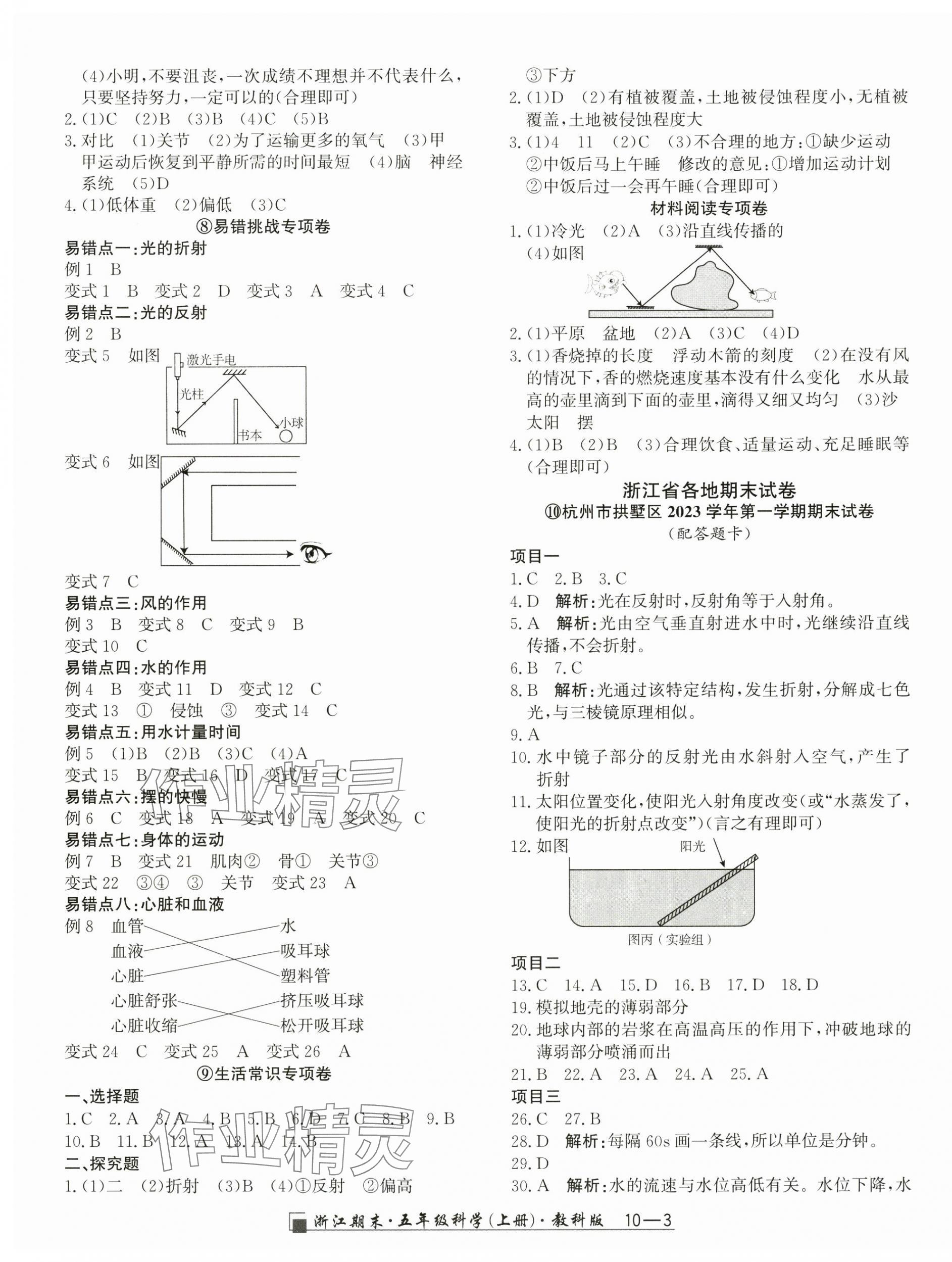注:目前有些书本章节名称可能整理的还不是很完善,但都是按照顺序排列的,请同学们按照顺序仔细查找。练习册 2024年励耘书业浙江期末五年级科学上册教科版 答案主要是用来给同学们做完题方便对答案用的,请勿直接抄袭。