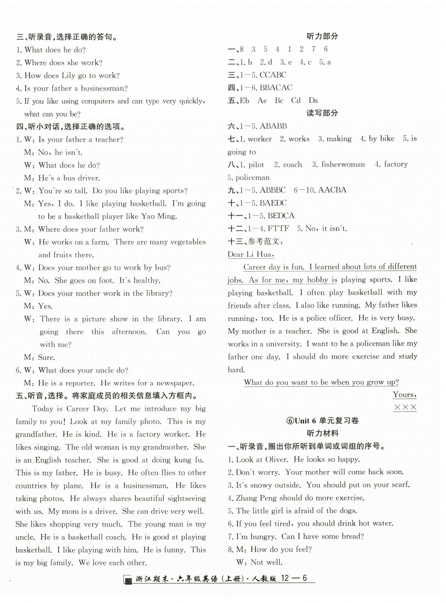 注:目前有些书本章节名称可能整理的还不是很完善,但都是按照顺序排列的,请同学们按照顺序仔细查找。练习册 2024年励耘书业浙江期末六年级英语上册人教版 答案主要是用来给同学们做完题方便对答案用的,请勿直接抄袭。