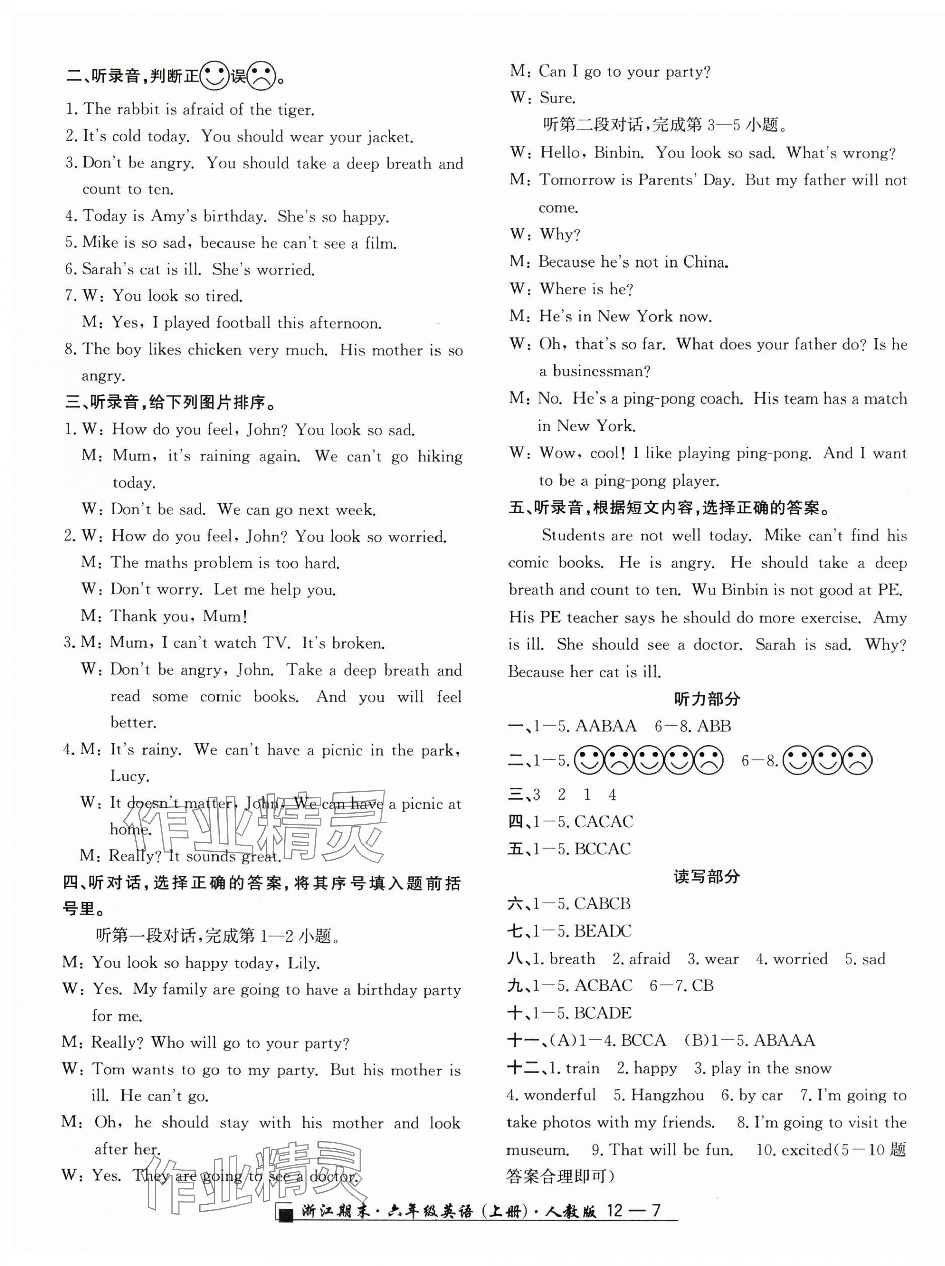 注:目前有些书本章节名称可能整理的还不是很完善,但都是按照顺序排列的,请同学们按照顺序仔细查找。练习册 2024年励耘书业浙江期末六年级英语上册人教版 答案主要是用来给同学们做完题方便对答案用的,请勿直接抄袭。