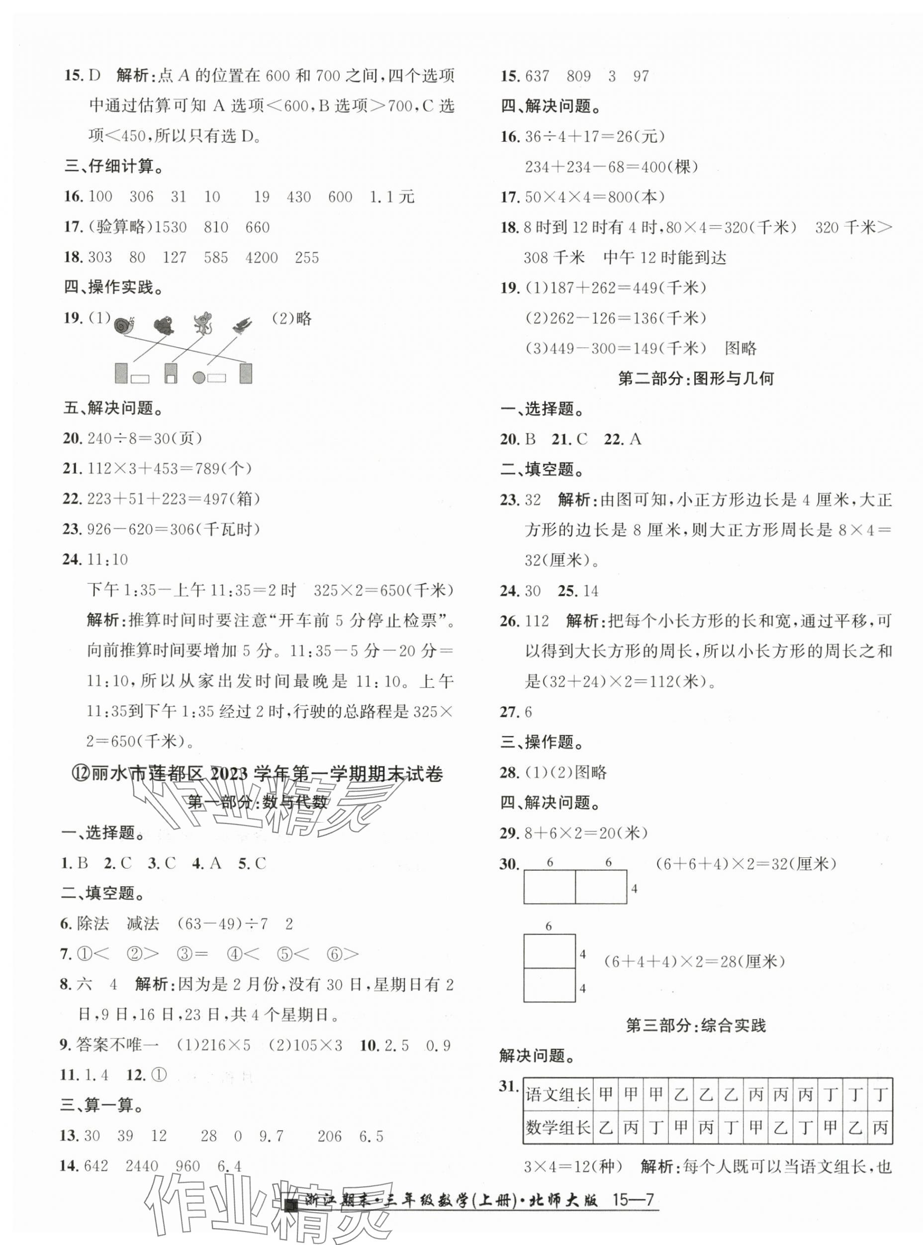 2024年励耘书业浙江期末三年级数学上册北师大版