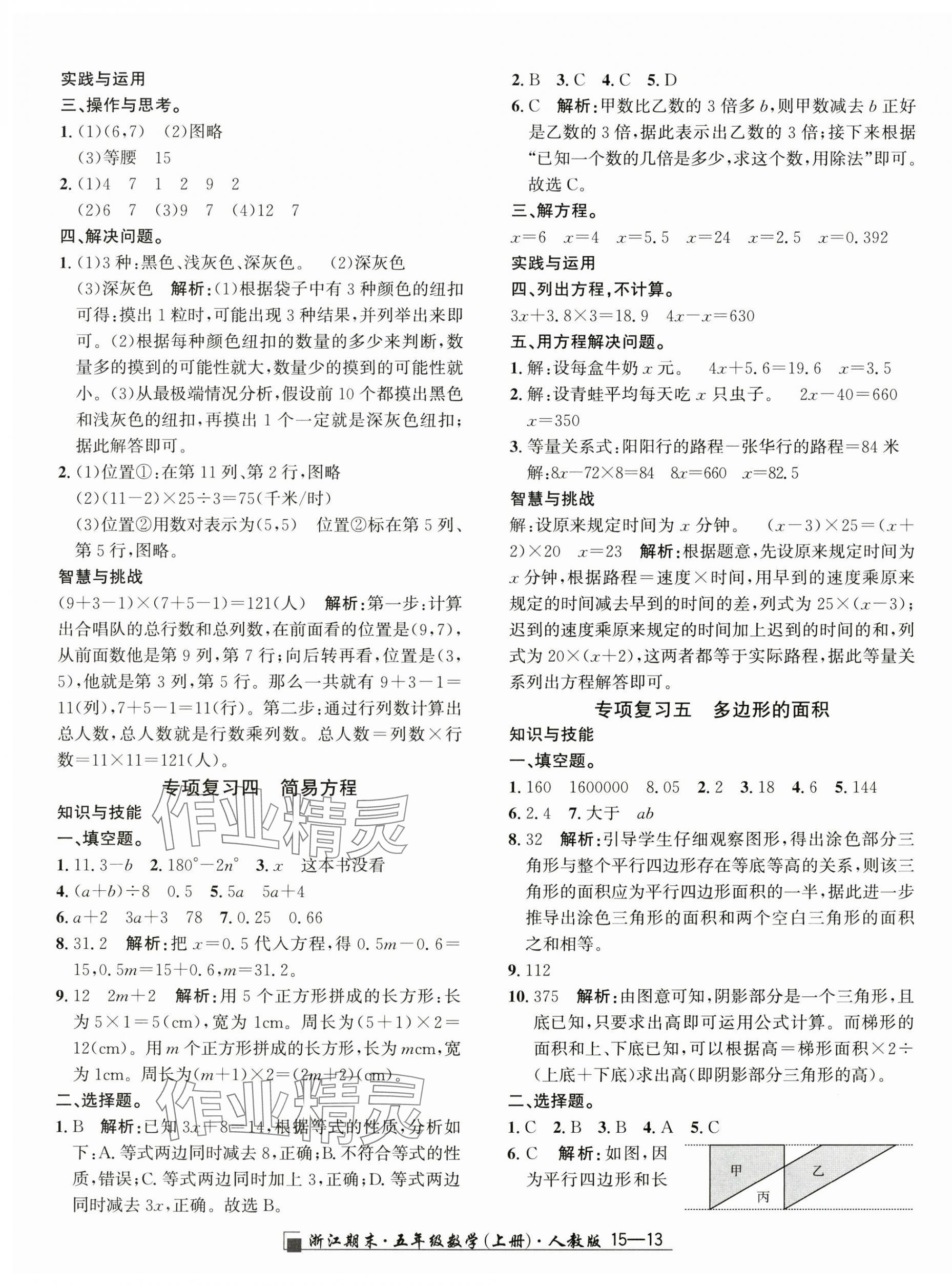 注:目前有些书本章节名称可能整理的还不是很完善,但都是按照顺序排列的,请同学们按照顺序仔细查找。练习册 2024年励耘书业浙江期末五年级数学上册人教版 答案主要是用来给同学们做完题方便对答案用的,请勿直接抄袭。