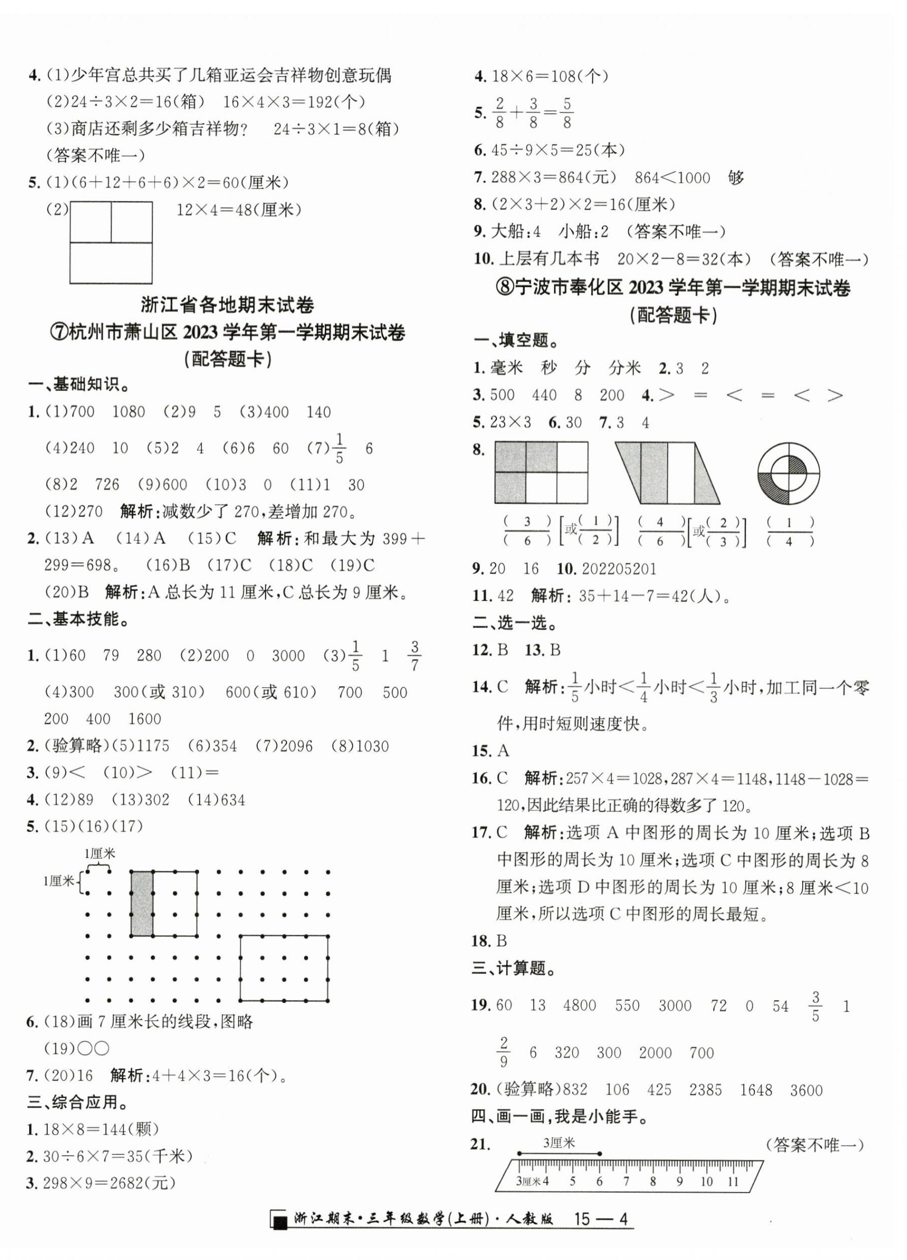 2024年励耘书业浙江期末三年级数学上册人教版