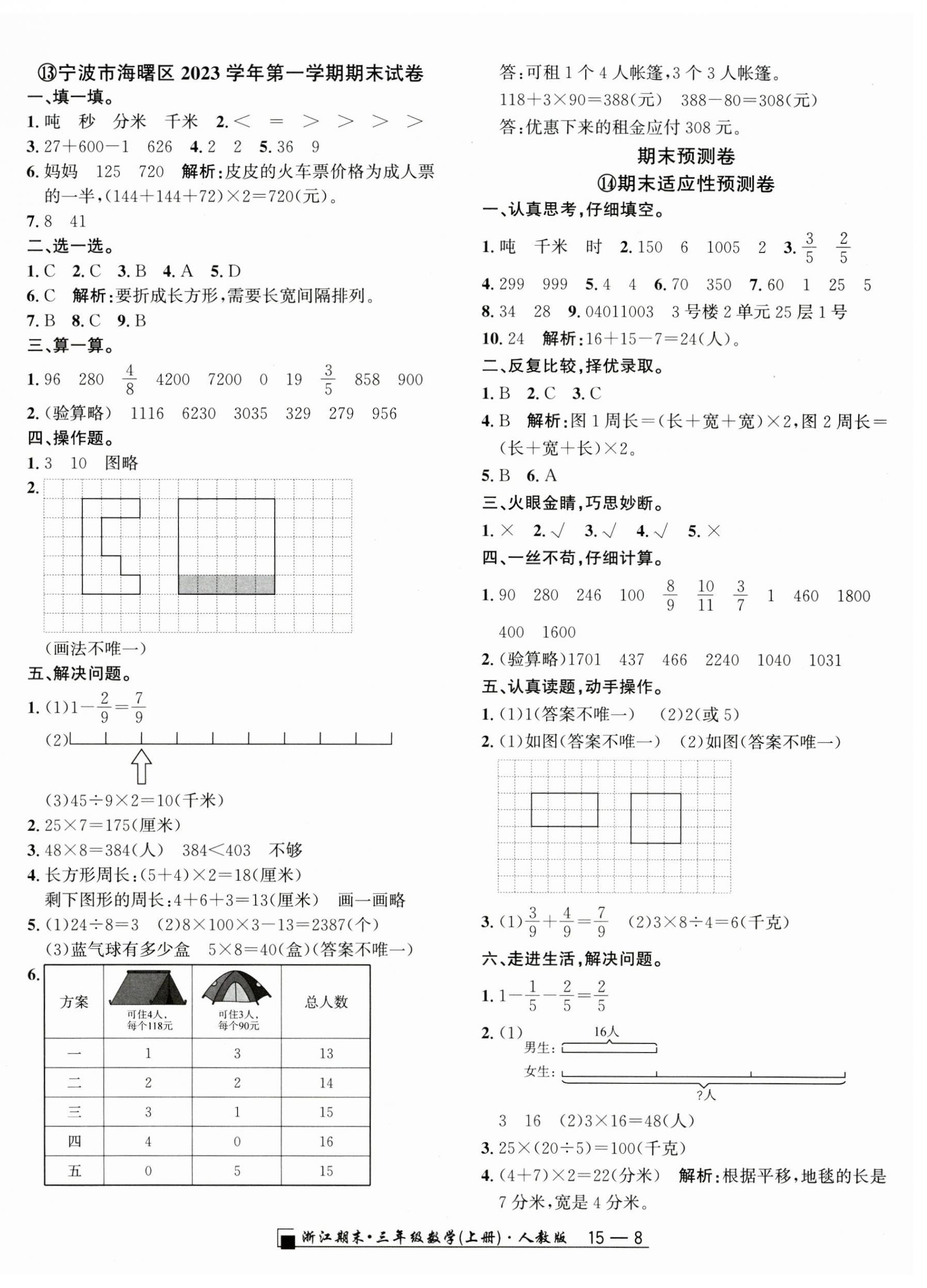 注:目前有些书本章节名称可能整理的还不是很完善,但都是按照顺序排列的,请同学们按照顺序仔细查找。练习册 2024年励耘书业浙江期末三年级数学上册人教版 答案主要是用来给同学们做完题方便对答案用的,请勿直接抄袭。
