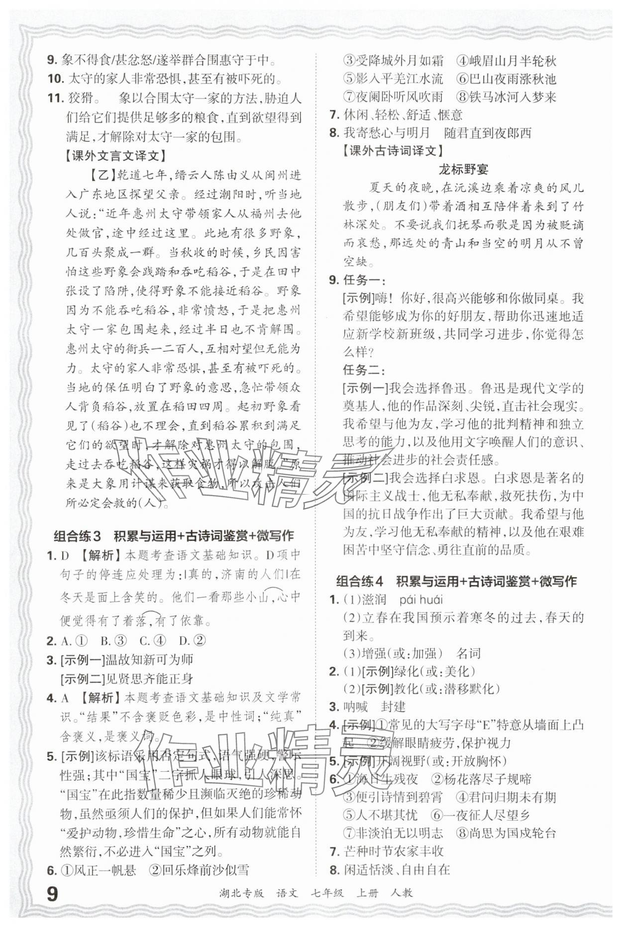 注:目前有些书本章节名称可能整理的还不是很完善,但都是按照顺序排列的,请同学们按照顺序仔细查找。练习册 2024年王朝霞各地期末试卷精选七年级语文上册人教版湖北专版 答案主要是用来给同学们做完题方便对答案用的,请勿直接抄袭。