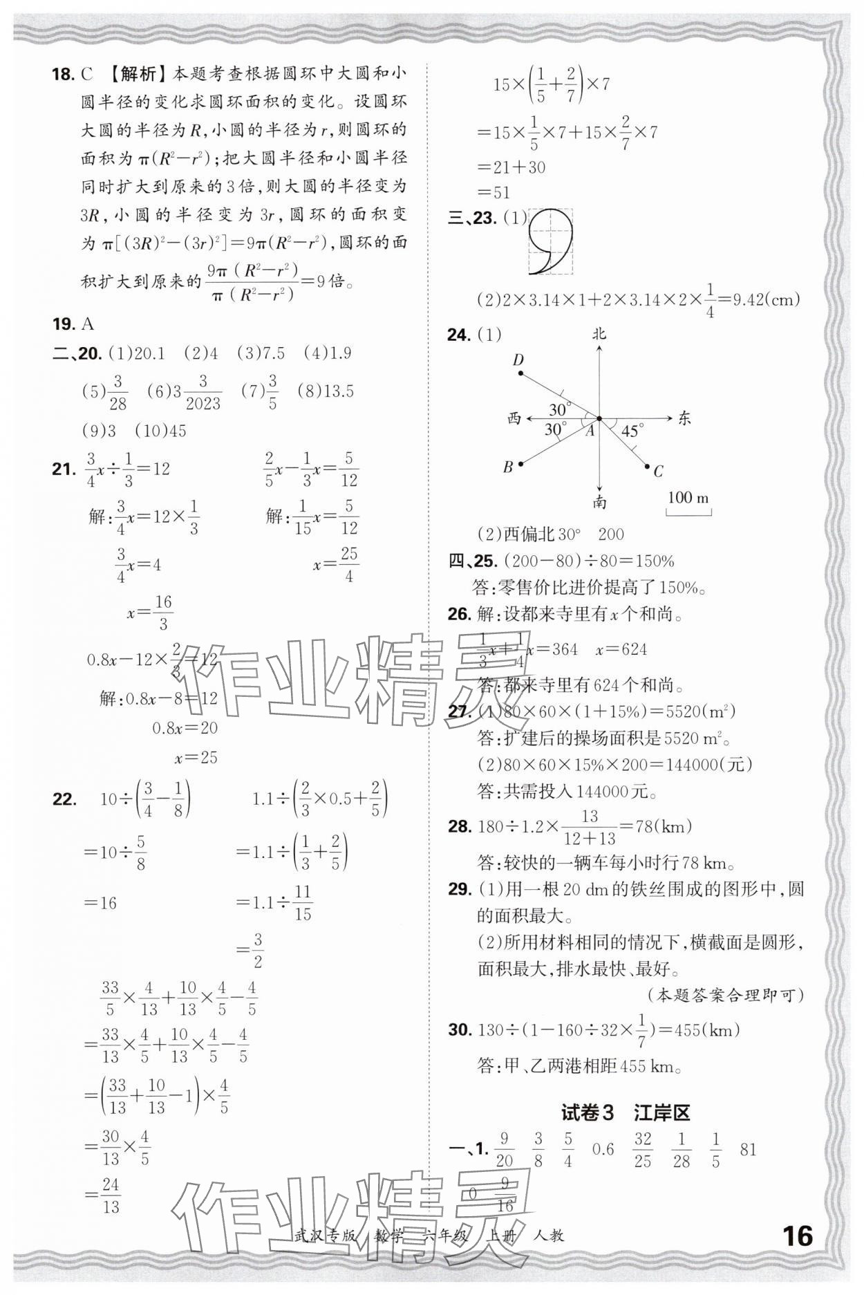 注:目前有些书本章节名称可能整理的还不是很完善,但都是按照顺序排列的,请同学们按照顺序仔细查找。练习册 2024年王朝霞期末真题精编六年级数学上册人教版武汉专版 答案主要是用来给同学们做完题方便对答案用的,请勿直接抄袭。