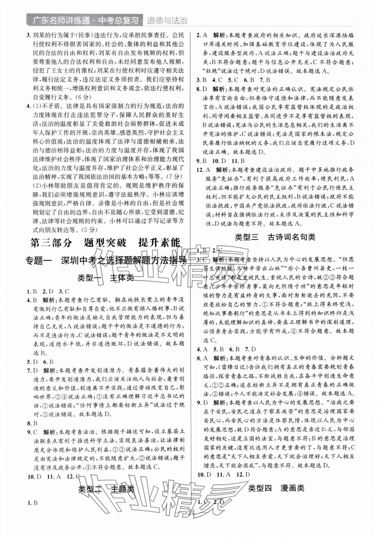 注:目前有些书本章节名称可能整理的还不是很完善,但都是按照顺序排列的,请同学们按照顺序仔细查找。练习册 2025年广东名师讲练通中考总复习道德与法治深圳专版 答案主要是用来给同学们做完题方便对答案用的,请勿直接抄袭。