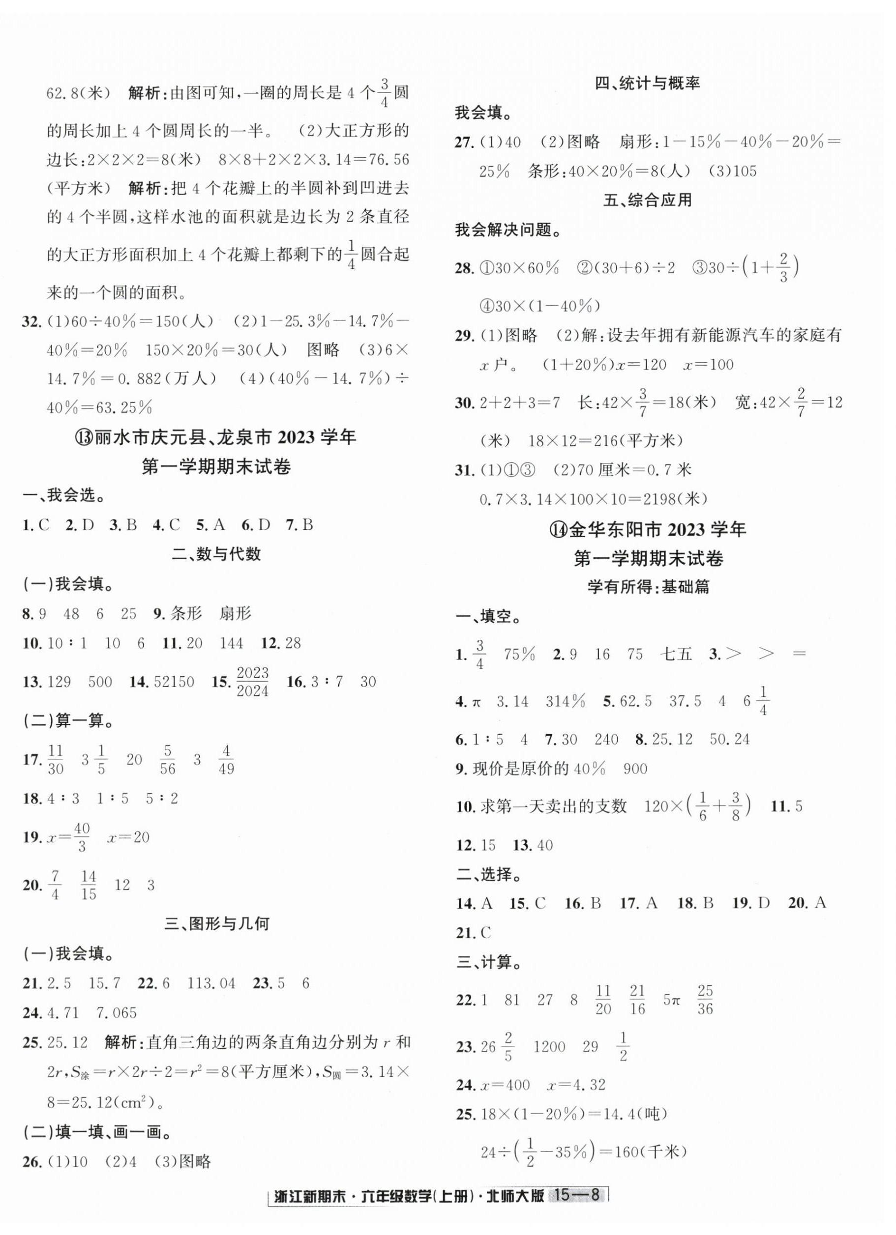 2024年浙江新期末六年级数学上册北师大版