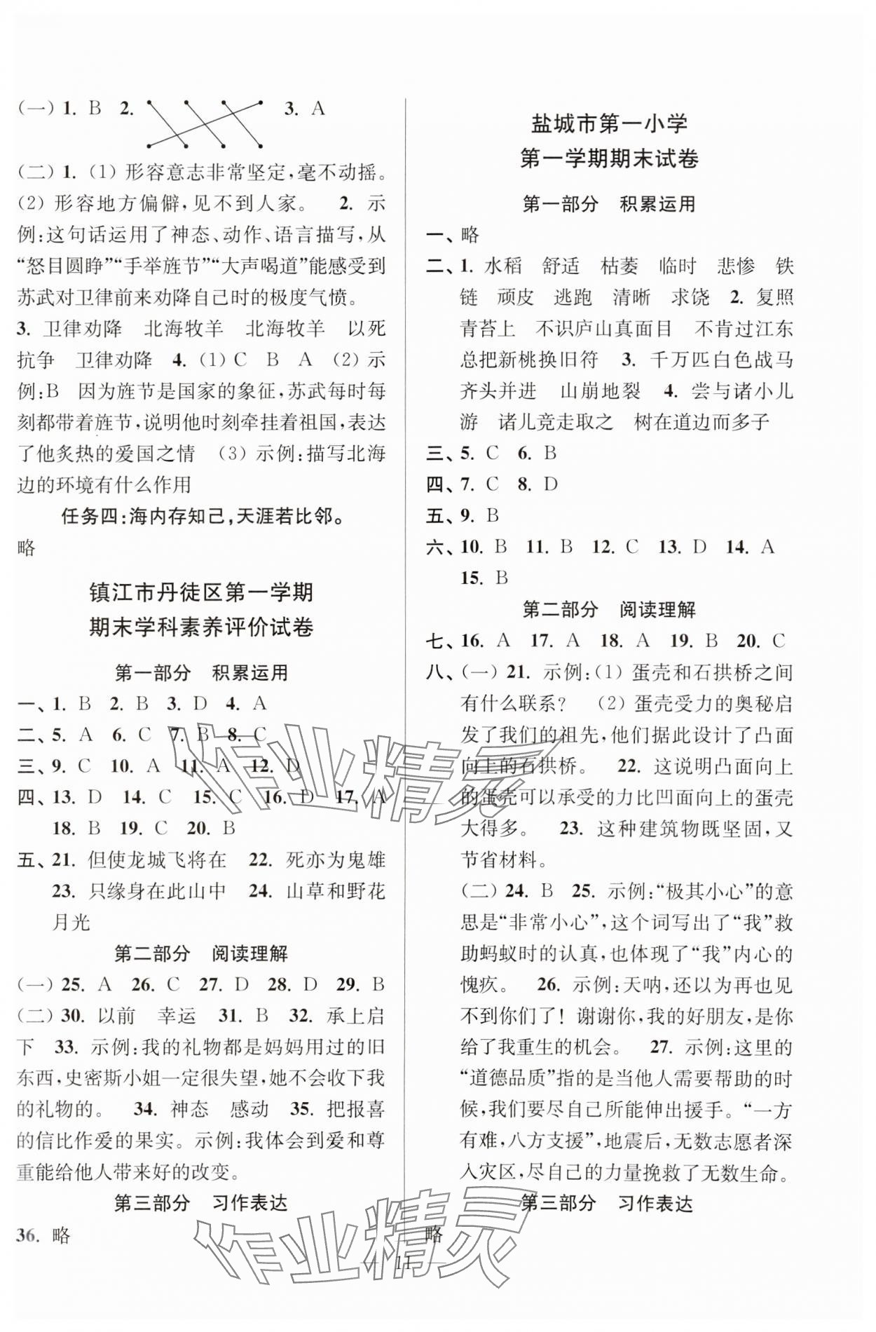 注:目前有些书本章节名称可能整理的还不是很完善,但都是按照顺序排列的,请同学们按照顺序仔细查找。练习册 2024年超能学典各地期末试卷精选四年级语文上册人教版 答案主要是用来给同学们做完题方便对答案用的,请勿直接抄袭。