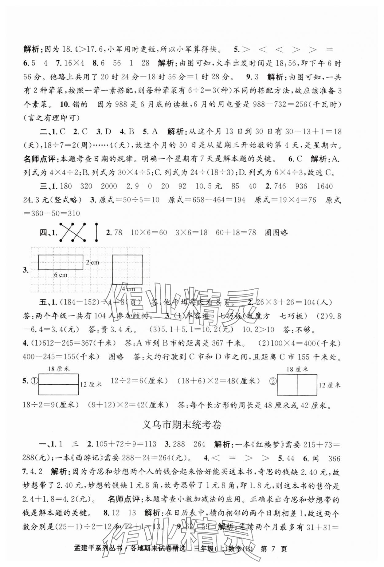 2024年孟建平各地期末试卷精选三年级数学上册北师大版