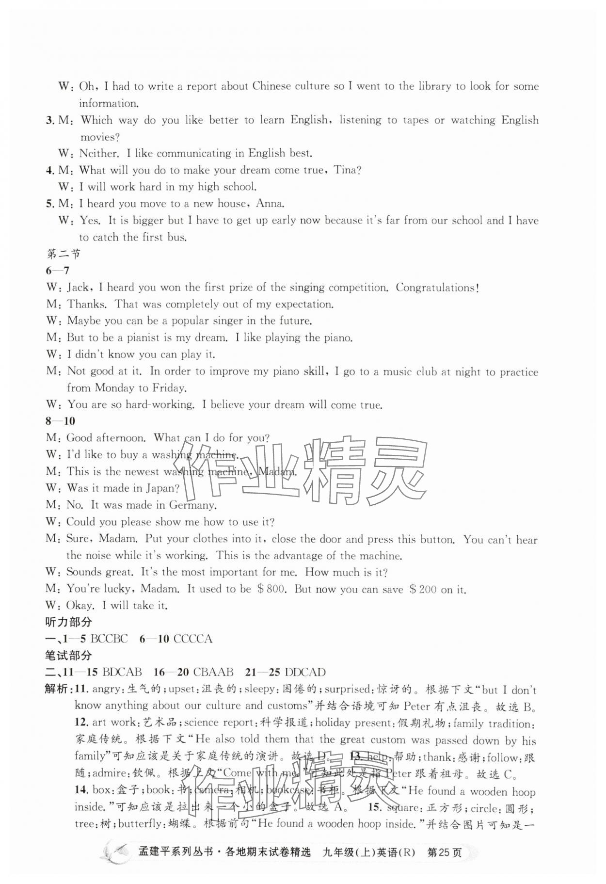 注:目前有些书本章节名称可能整理的还不是很完善,但都是按照顺序排列的,请同学们按照顺序仔细查找。练习册 2024年孟建平各地期末试卷精选九年级英语上册人教版 答案主要是用来给同学们做完题方便对答案用的,请勿直接抄袭。