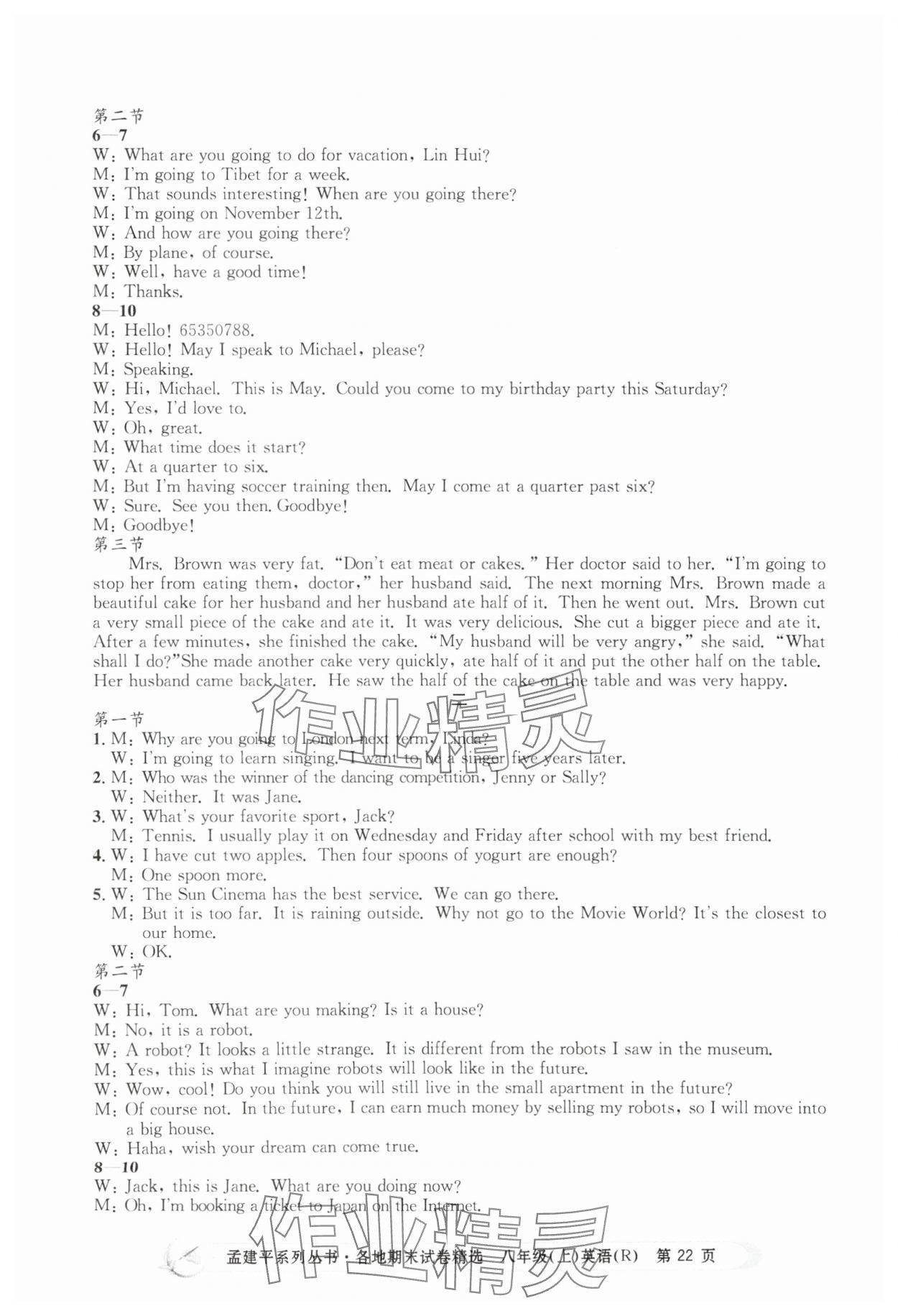 注:目前有些书本章节名称可能整理的还不是很完善,但都是按照顺序排列的,请同学们按照顺序仔细查找。练习册 2024年孟建平各地期末试卷精选八年级英语上册人教版 答案主要是用来给同学们做完题方便对答案用的,请勿直接抄袭。