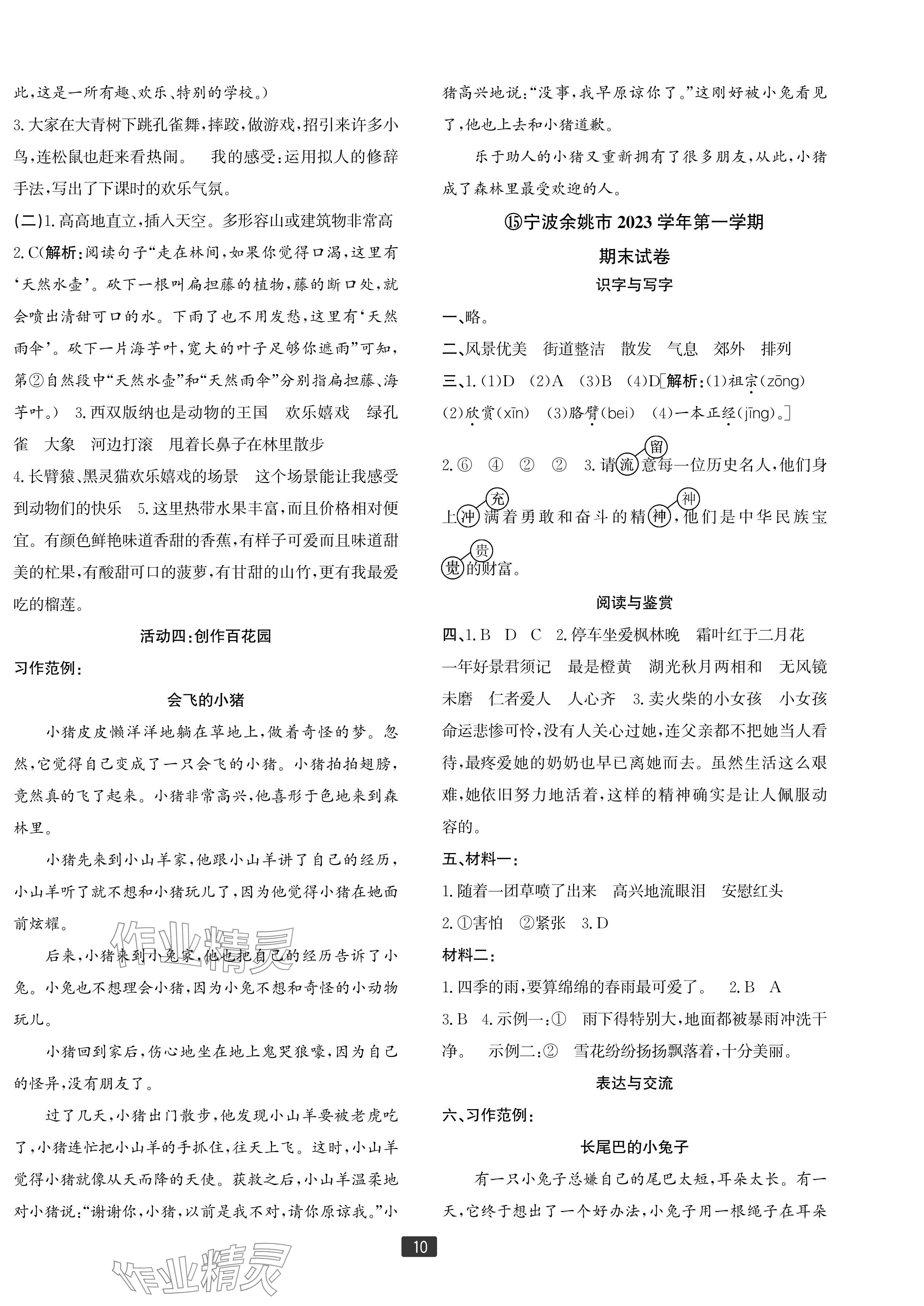 注:目前有些书本章节名称可能整理的还不是很完善,但都是按照顺序排列的,请同学们按照顺序仔细查找。练习册 2024年浙江新期末三年级语文上册人教版宁波专版 答案主要是用来给同学们做完题方便对答案用的,请勿直接抄袭。