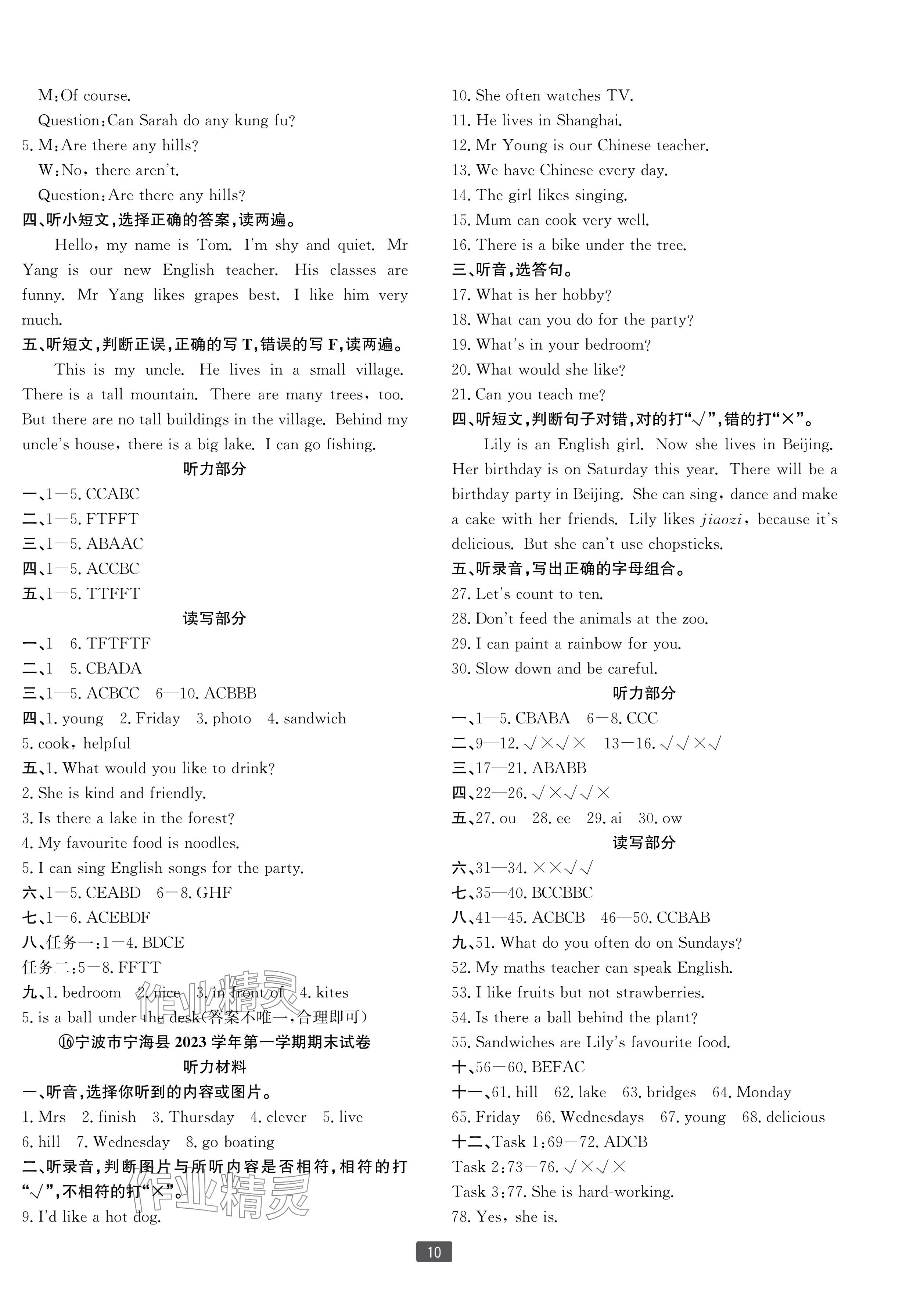 注:目前有些书本章节名称可能整理的还不是很完善,但都是按照顺序排列的,请同学们按照顺序仔细查找。练习册 2024年浙江新期末五年级英语上册人教版宁波专版 答案主要是用来给同学们做完题方便对答案用的,请勿直接抄袭。