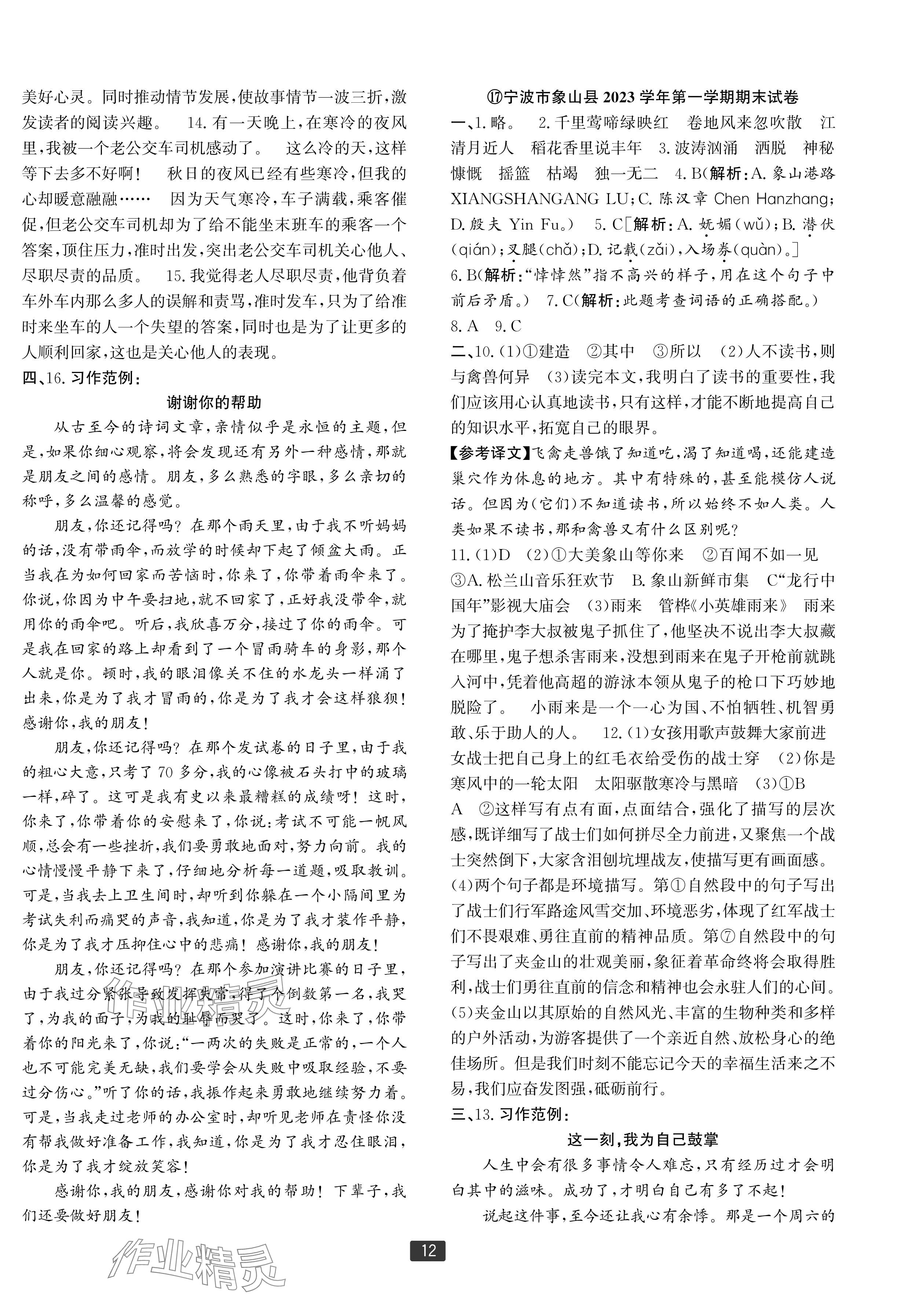 注:目前有些书本章节名称可能整理的还不是很完善,但都是按照顺序排列的,请同学们按照顺序仔细查找。练习册 2024年浙江新期末六年级语文上册人教版宁波专版 答案主要是用来给同学们做完题方便对答案用的,请勿直接抄袭。