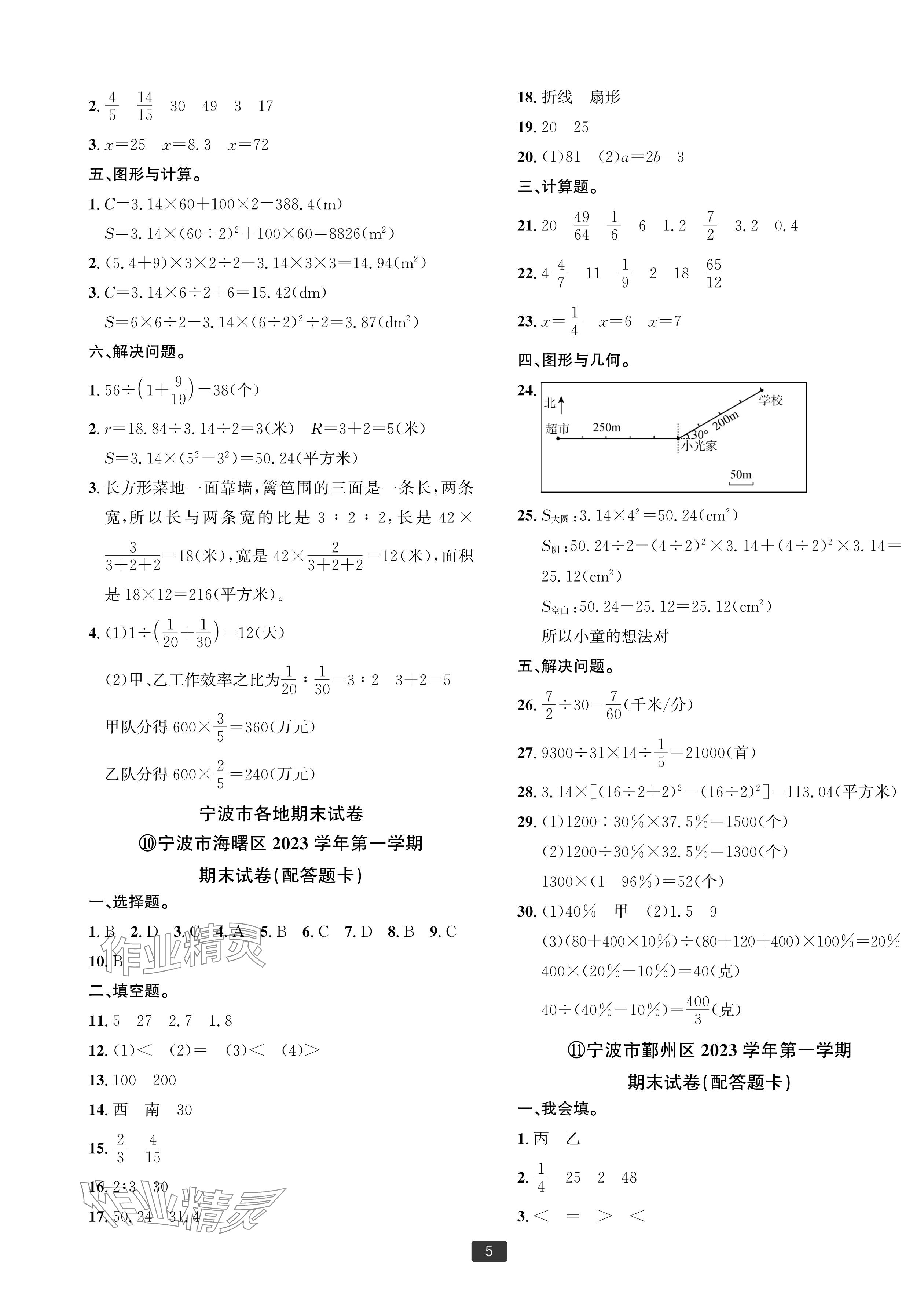 注:目前有些书本章节名称可能整理的还不是很完善,但都是按照顺序排列的,请同学们按照顺序仔细查找。练习册 2024年浙江新期末六年级数学上册人教版宁波专版 答案主要是用来给同学们做完题方便对答案用的,请勿直接抄袭。