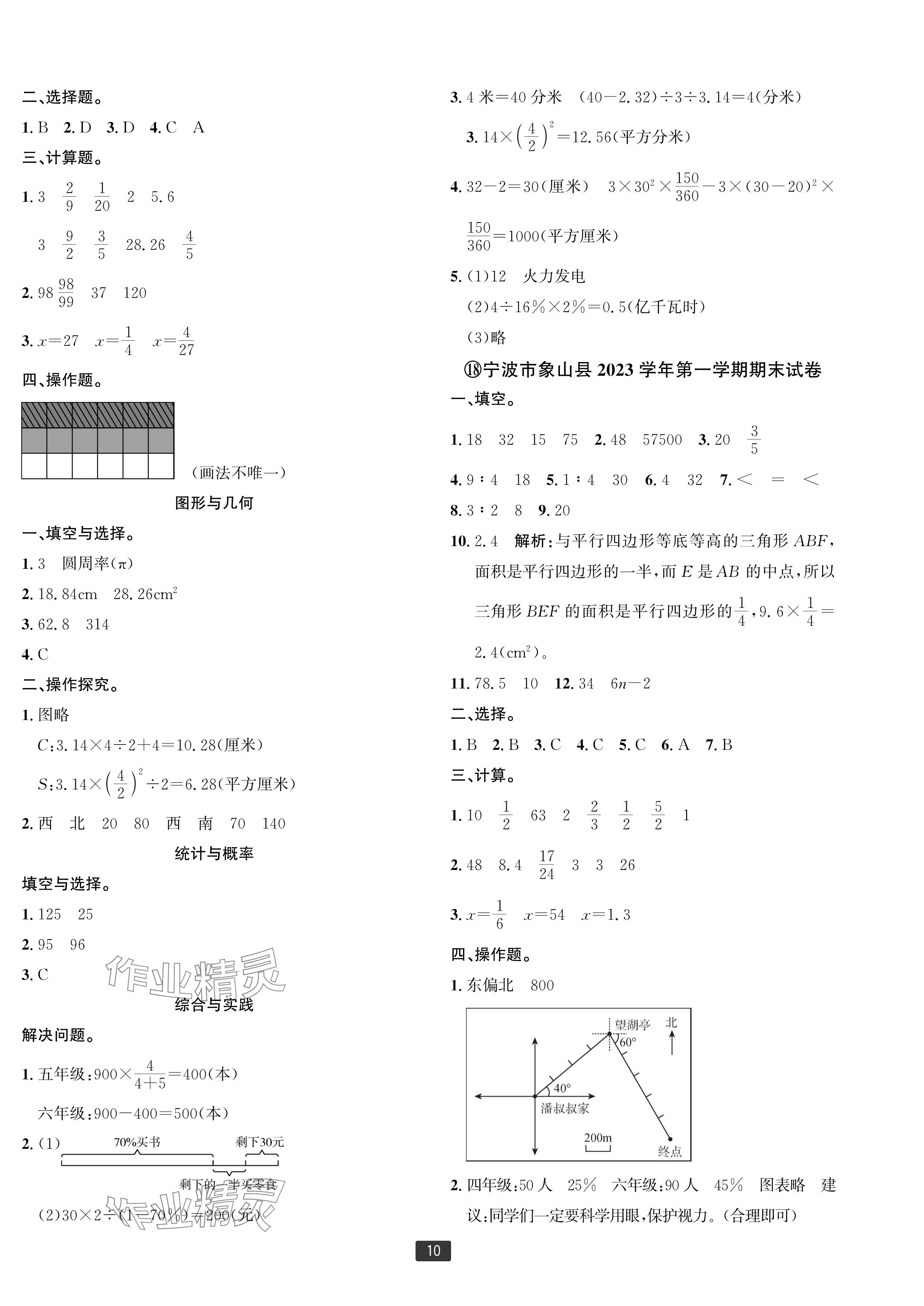 注:目前有些书本章节名称可能整理的还不是很完善,但都是按照顺序排列的,请同学们按照顺序仔细查找。练习册 2024年浙江新期末六年级数学上册人教版宁波专版 答案主要是用来给同学们做完题方便对答案用的,请勿直接抄袭。
