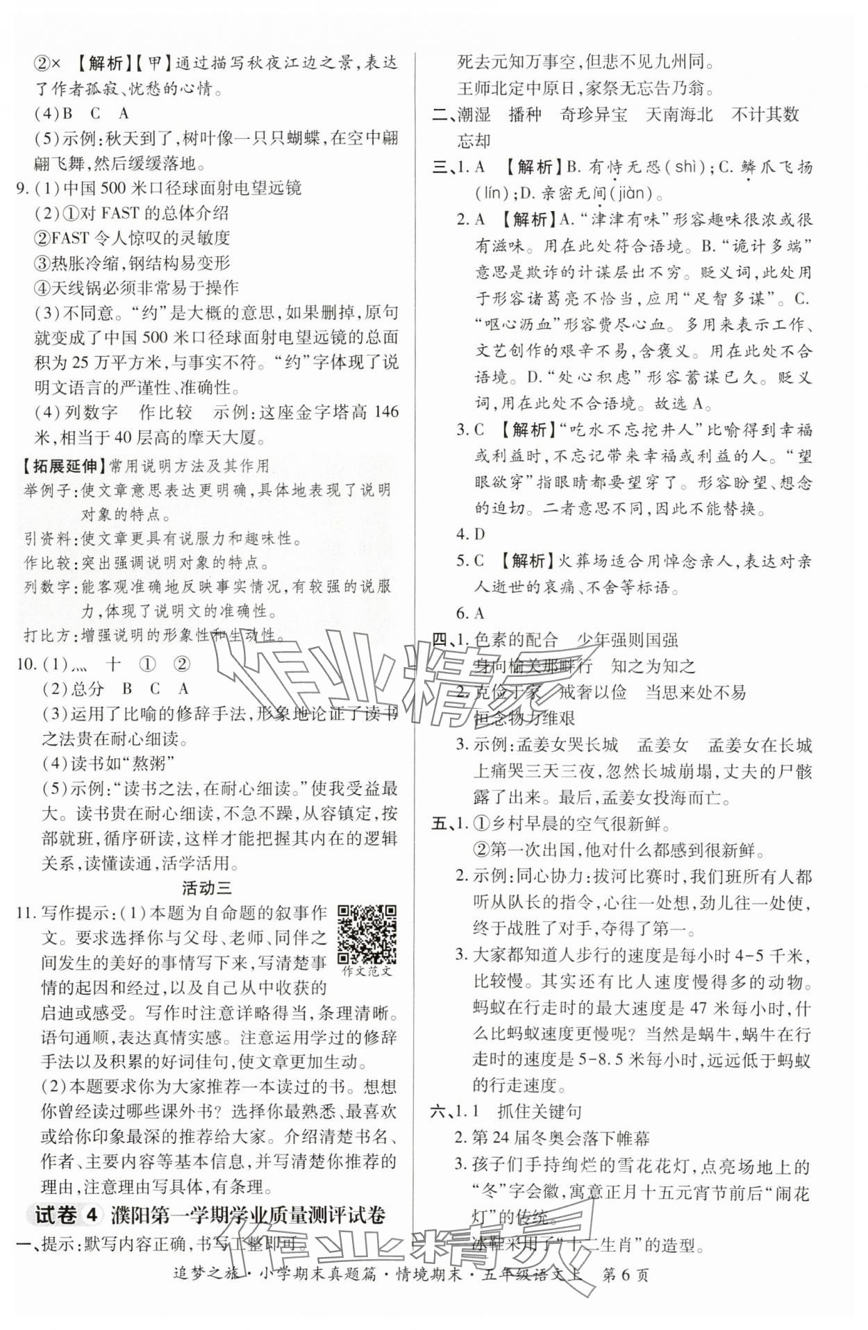 2024年追梦之旅小学期末真题篇五年级语文上册人教版河南专版