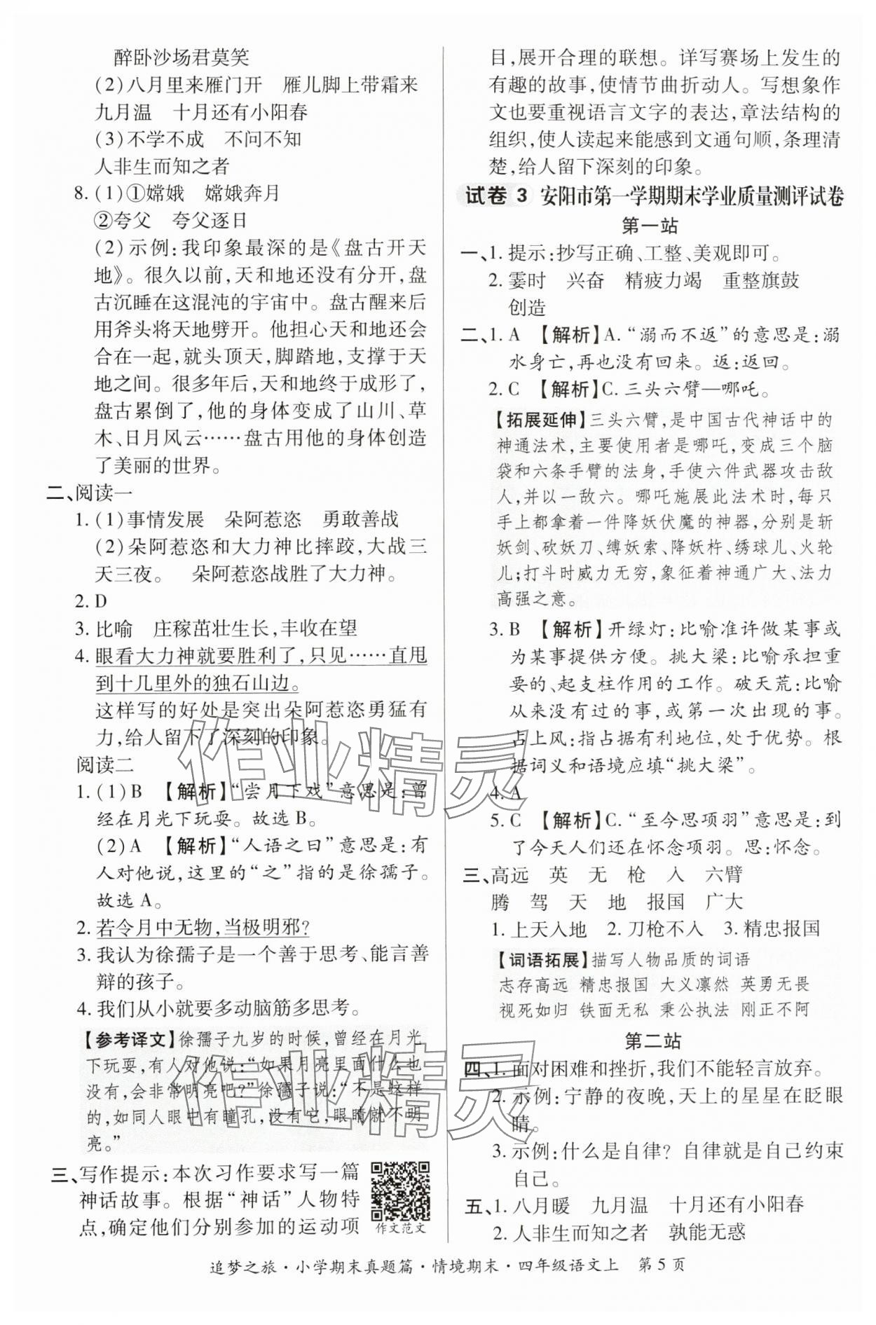 2024年追梦之旅小学期末真题篇四年级语文上册人教版河南专版