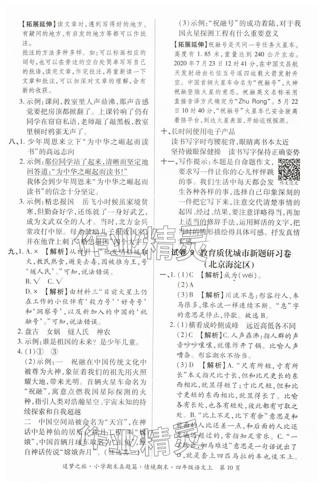 2024年追梦之旅小学期末真题篇四年级语文上册人教版河南专版