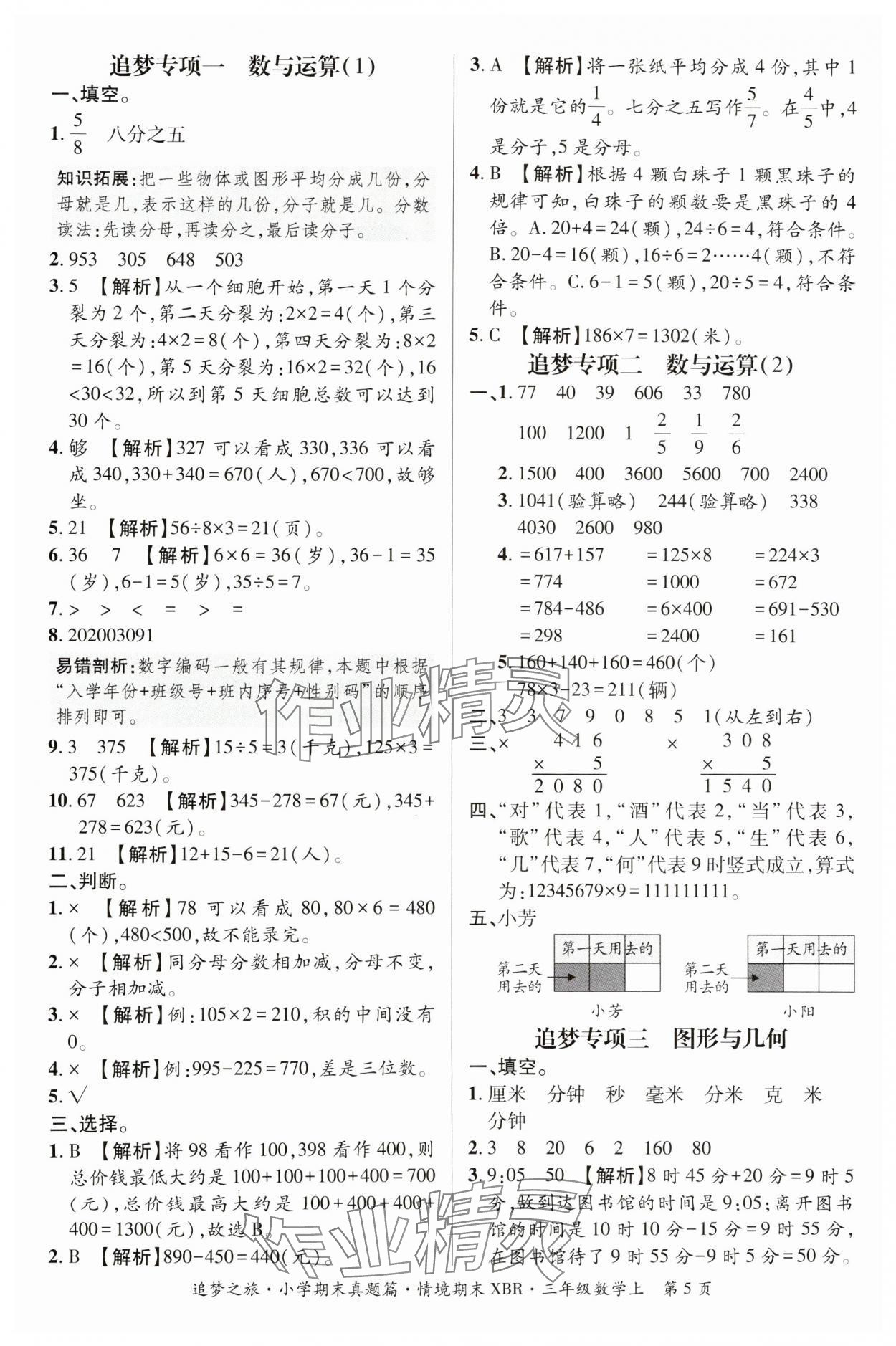 2024年追梦之旅小学期末真题篇三年级数学上册人教版河南专版