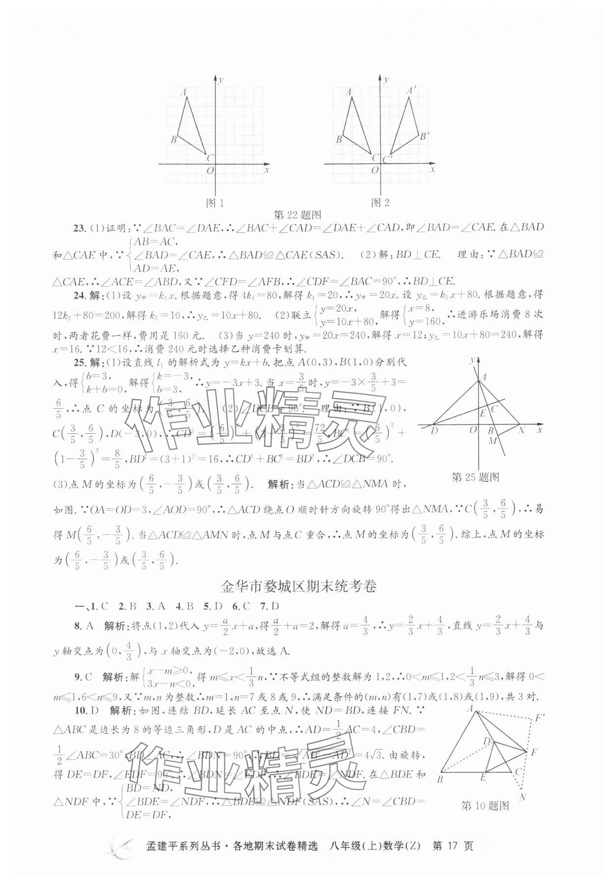 注:目前有些书本章节名称可能整理的还不是很完善,但都是按照顺序排列的,请同学们按照顺序仔细查找。练习册 2024年孟建平各地期末试卷精选八年级数学上册浙教版 答案主要是用来给同学们做完题方便对答案用的,请勿直接抄袭。
