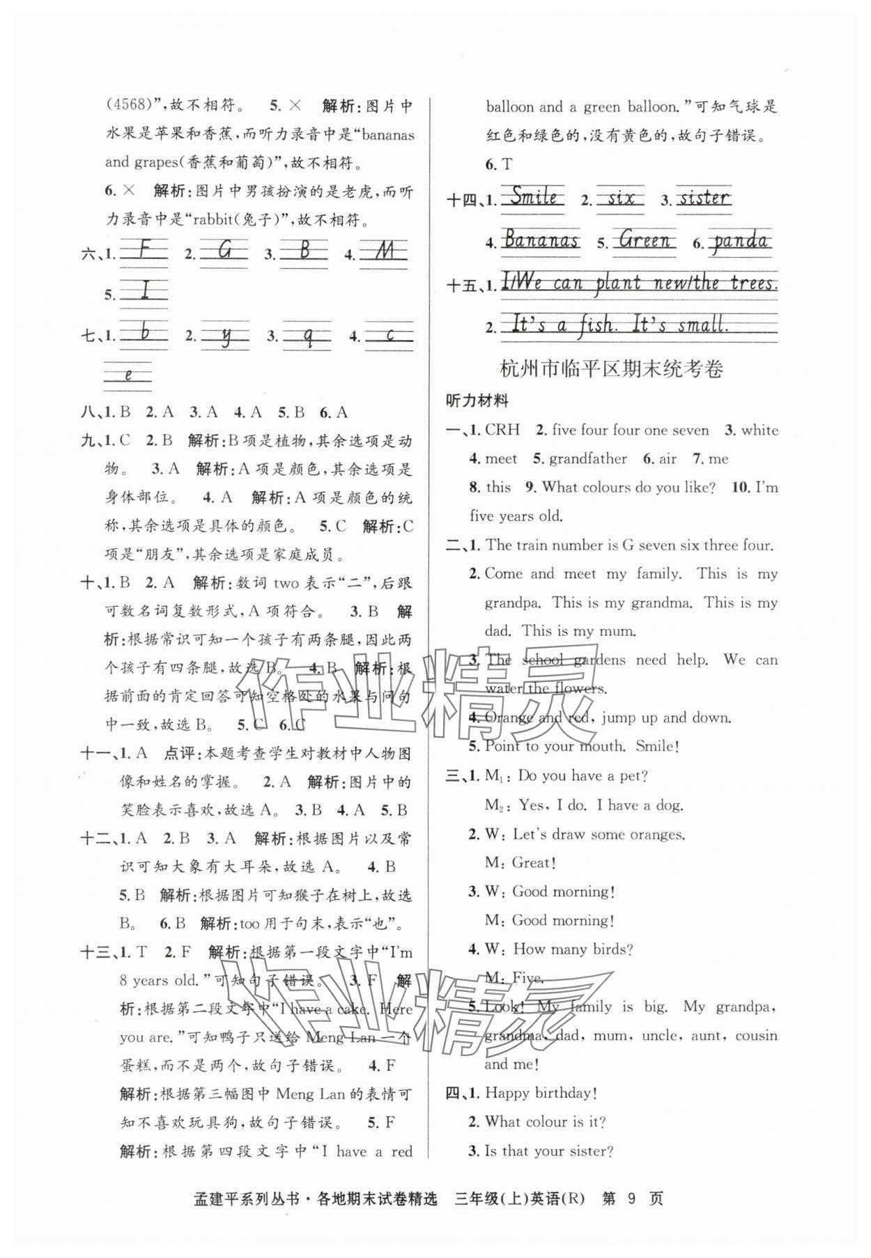 2024年孟建平各地期末试卷精选三年级英语上册人教版