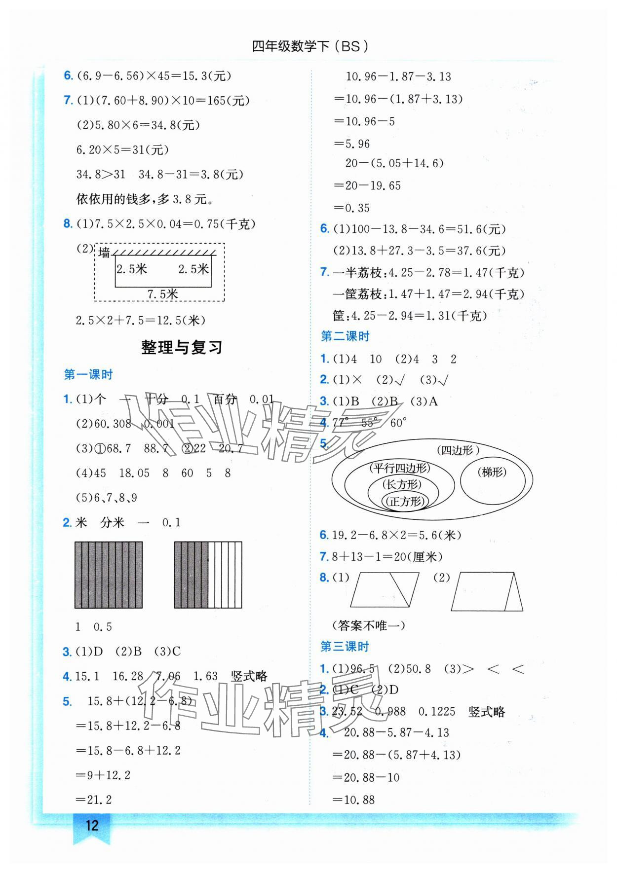 注:目前有些书本章节名称可能整理的还不是很完善,但都是按照顺序排列的,请同学们按照顺序仔细查找。练习册 2025年黄冈小状元作业本四年级数学下册北师大版 答案主要是用来给同学们做完题方便对答案用的,请勿直接抄袭。