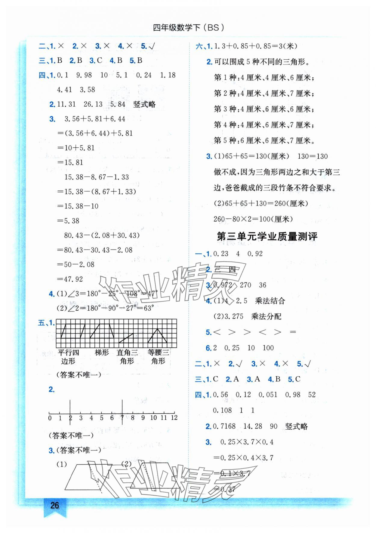 注:目前有些书本章节名称可能整理的还不是很完善,但都是按照顺序排列的,请同学们按照顺序仔细查找。练习册 2025年黄冈小状元作业本四年级数学下册北师大版 答案主要是用来给同学们做完题方便对答案用的,请勿直接抄袭。