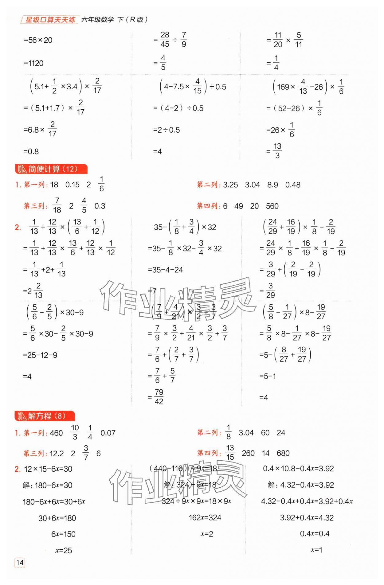 注:目前有些书本章节名称可能整理的还不是很完善,但都是按照顺序排列的,请同学们按照顺序仔细查找。练习册 2025年星级口算天天练六年级数学下册人教版 答案主要是用来给同学们做完题方便对答案用的,请勿直接抄袭。
