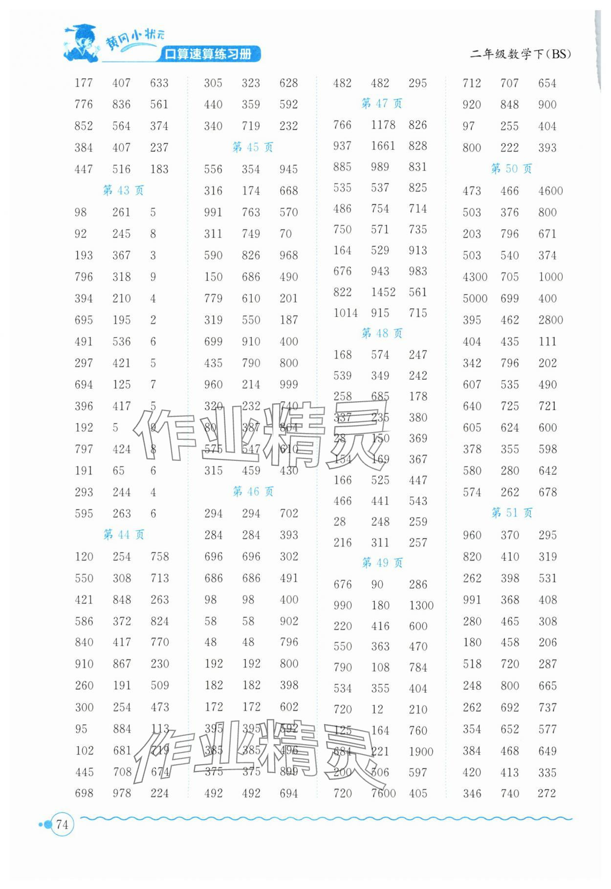 注:目前有些书本章节名称可能整理的还不是很完善,但都是按照顺序排列的,请同学们按照顺序仔细查找。练习册 2025年黄冈小状元口算速算练习册二年级数学下册北师大版 答案主要是用来给同学们做完题方便对答案用的,请勿直接抄袭。