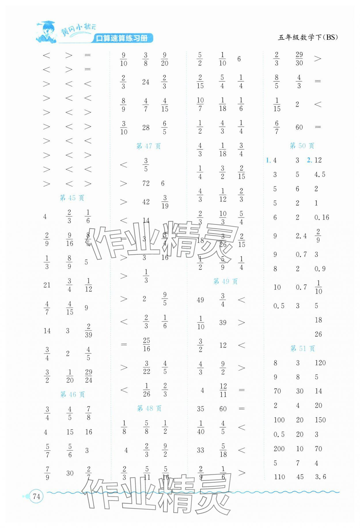 2025年黄冈小状元口算速算练习册五年级数学下册北师大版