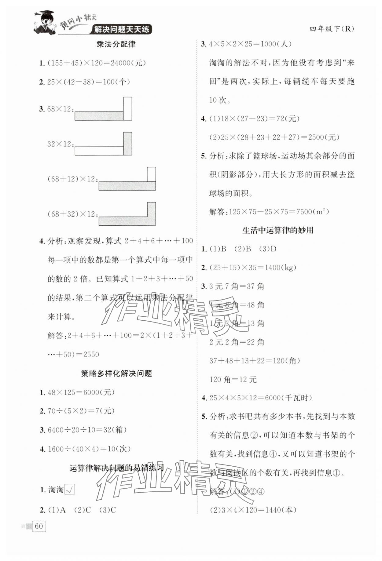 注:目前有些书本章节名称可能整理的还不是很完善,但都是按照顺序排列的,请同学们按照顺序仔细查找。练习册 2025年黄冈小状元解决问题天天练四年级数学下册人教版 答案主要是用来给同学们做完题方便对答案用的,请勿直接抄袭。