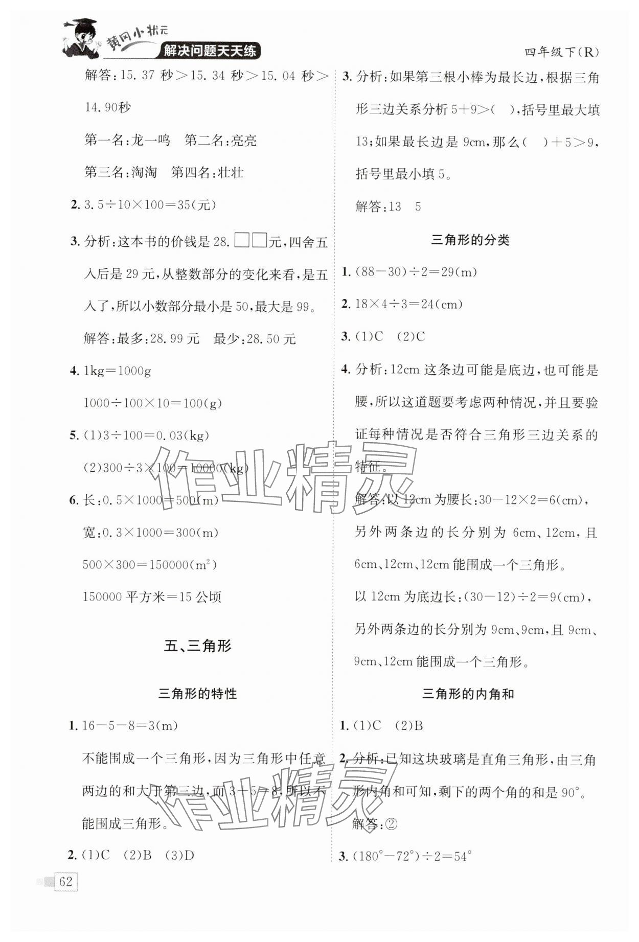 注:目前有些书本章节名称可能整理的还不是很完善,但都是按照顺序排列的,请同学们按照顺序仔细查找。练习册 2025年黄冈小状元解决问题天天练四年级数学下册人教版 答案主要是用来给同学们做完题方便对答案用的,请勿直接抄袭。
