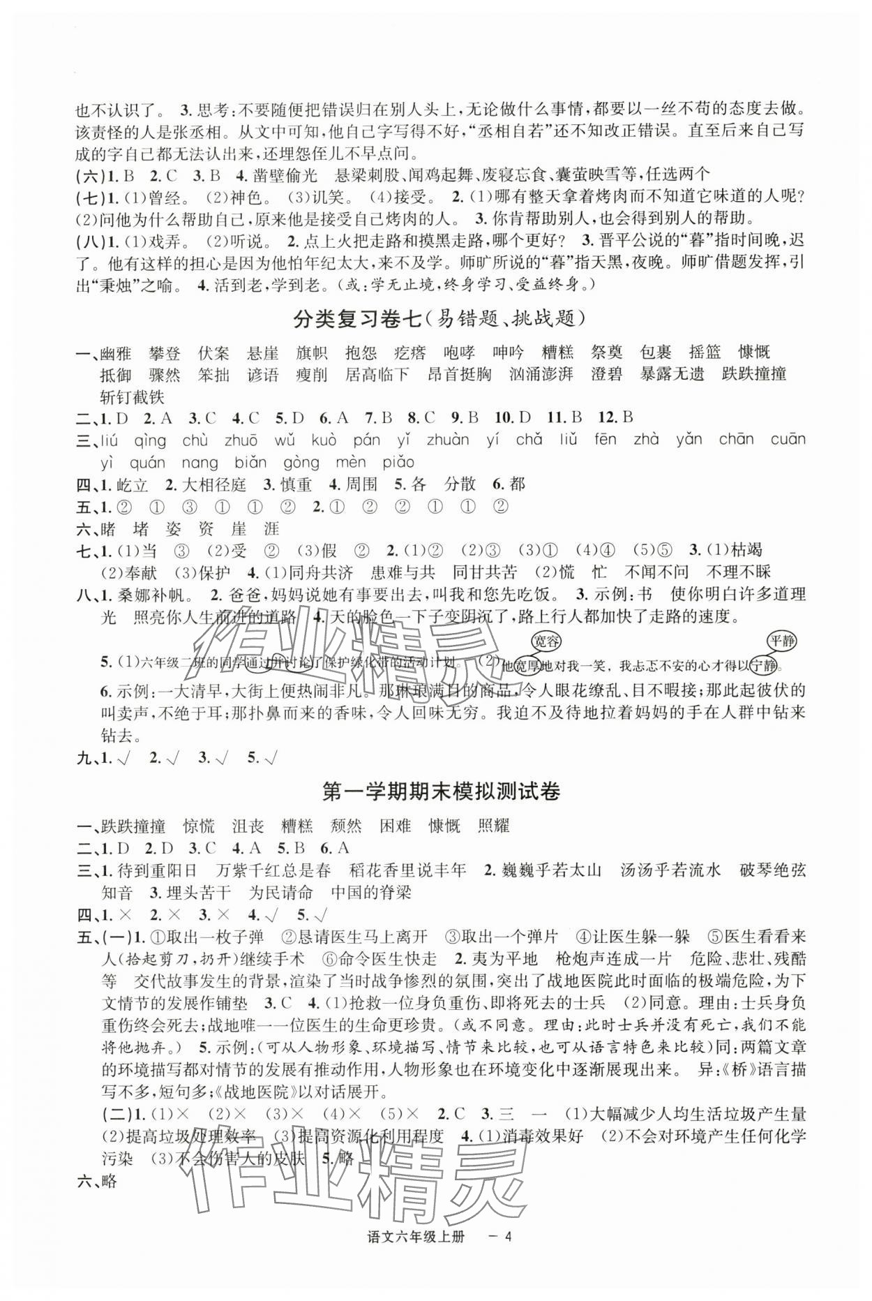 注:目前有些书本章节名称可能整理的还不是很完善,但都是按照顺序排列的,请同学们按照顺序仔细查找。练习册 2024年浙江各地期末迎考卷六年级语文上册人教版 答案主要是用来给同学们做完题方便对答案用的,请勿直接抄袭。
