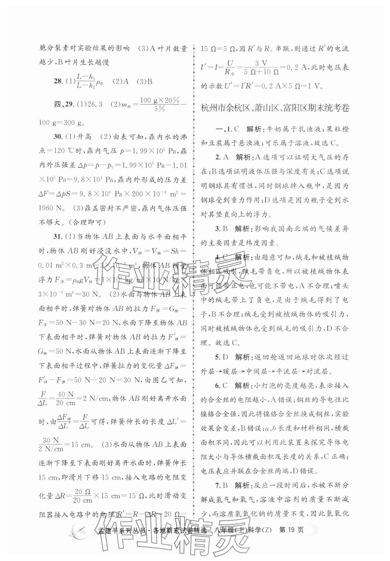 注:目前有些书本章节名称可能整理的还不是很完善,但都是按照顺序排列的,请同学们按照顺序仔细查找。练习册 2024年孟建平各地期末试卷精选八年级科学上册浙教版 答案主要是用来给同学们做完题方便对答案用的,请勿直接抄袭。