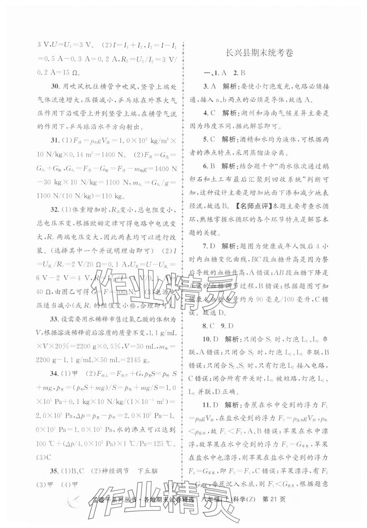 注:目前有些书本章节名称可能整理的还不是很完善,但都是按照顺序排列的,请同学们按照顺序仔细查找。练习册 2024年孟建平各地期末试卷精选八年级科学上册浙教版 答案主要是用来给同学们做完题方便对答案用的,请勿直接抄袭。