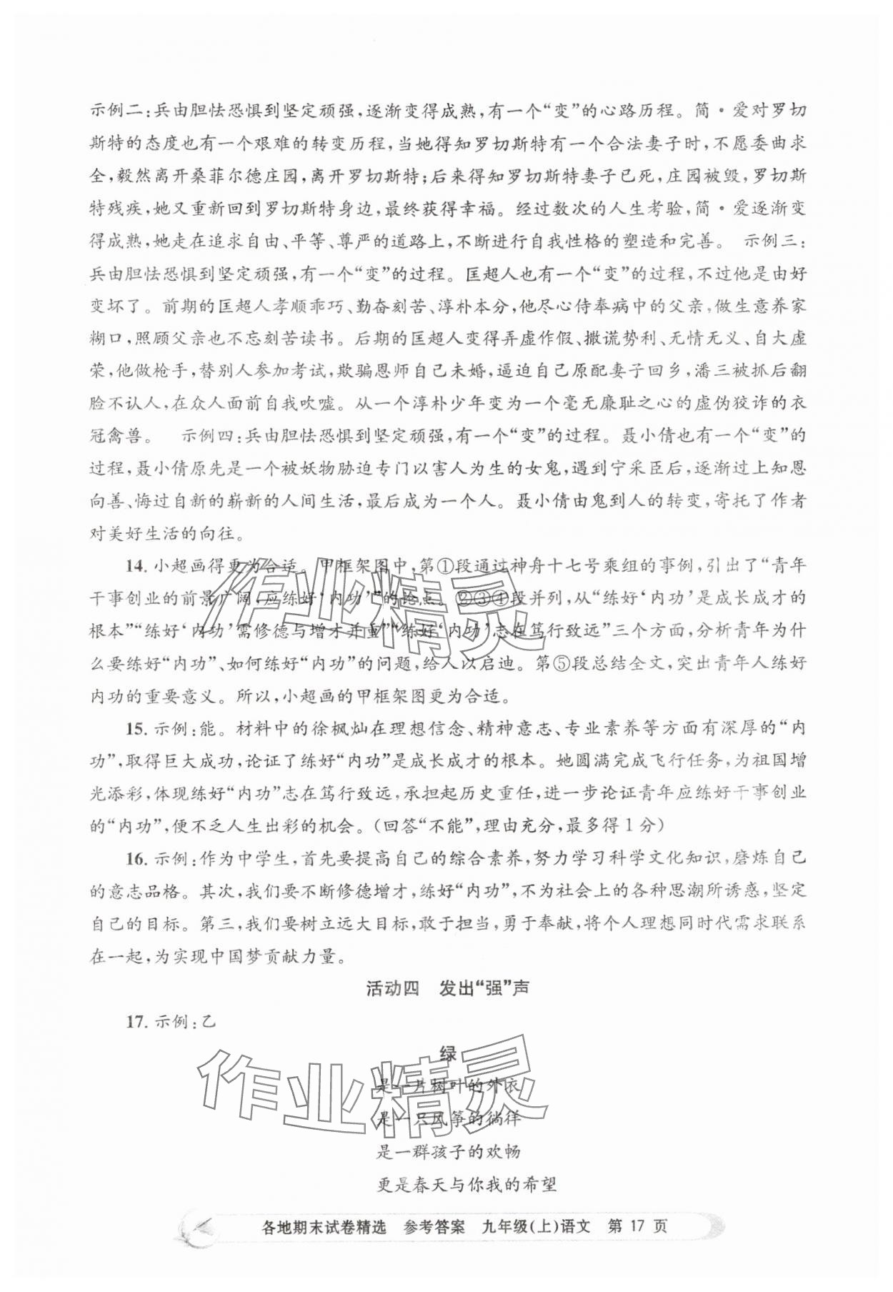 注:目前有些书本章节名称可能整理的还不是很完善,但都是按照顺序排列的,请同学们按照顺序仔细查找。练习册 2024年孟建平各地期末试卷精选九年级语文上册人教版 答案主要是用来给同学们做完题方便对答案用的,请勿直接抄袭。