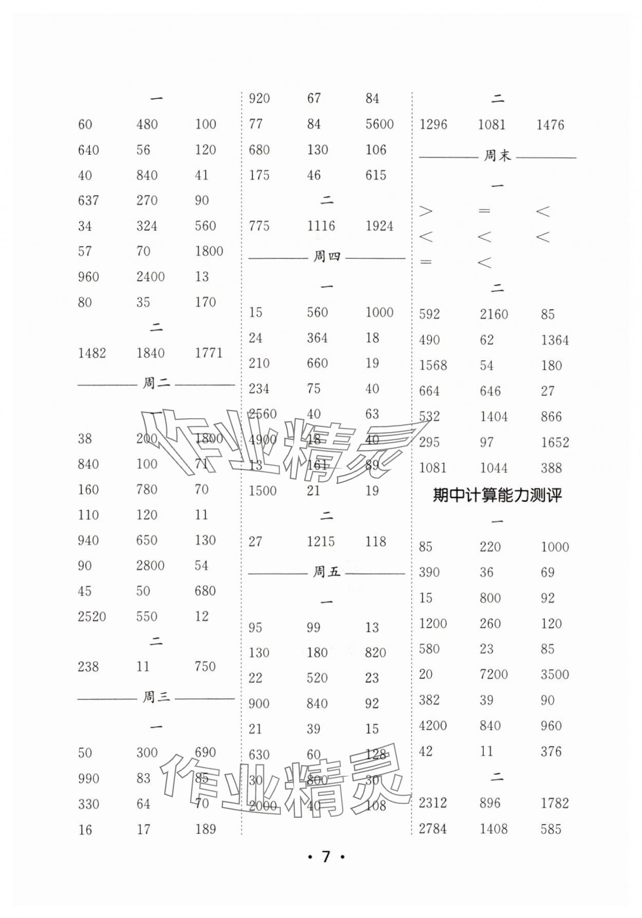 2025年口算天天练每日5分钟三年级数学下册苏教版