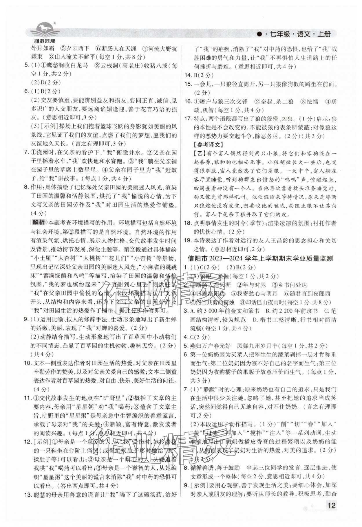 《2024年期末考试必刷卷七年级语文上册人教版河南专版》
