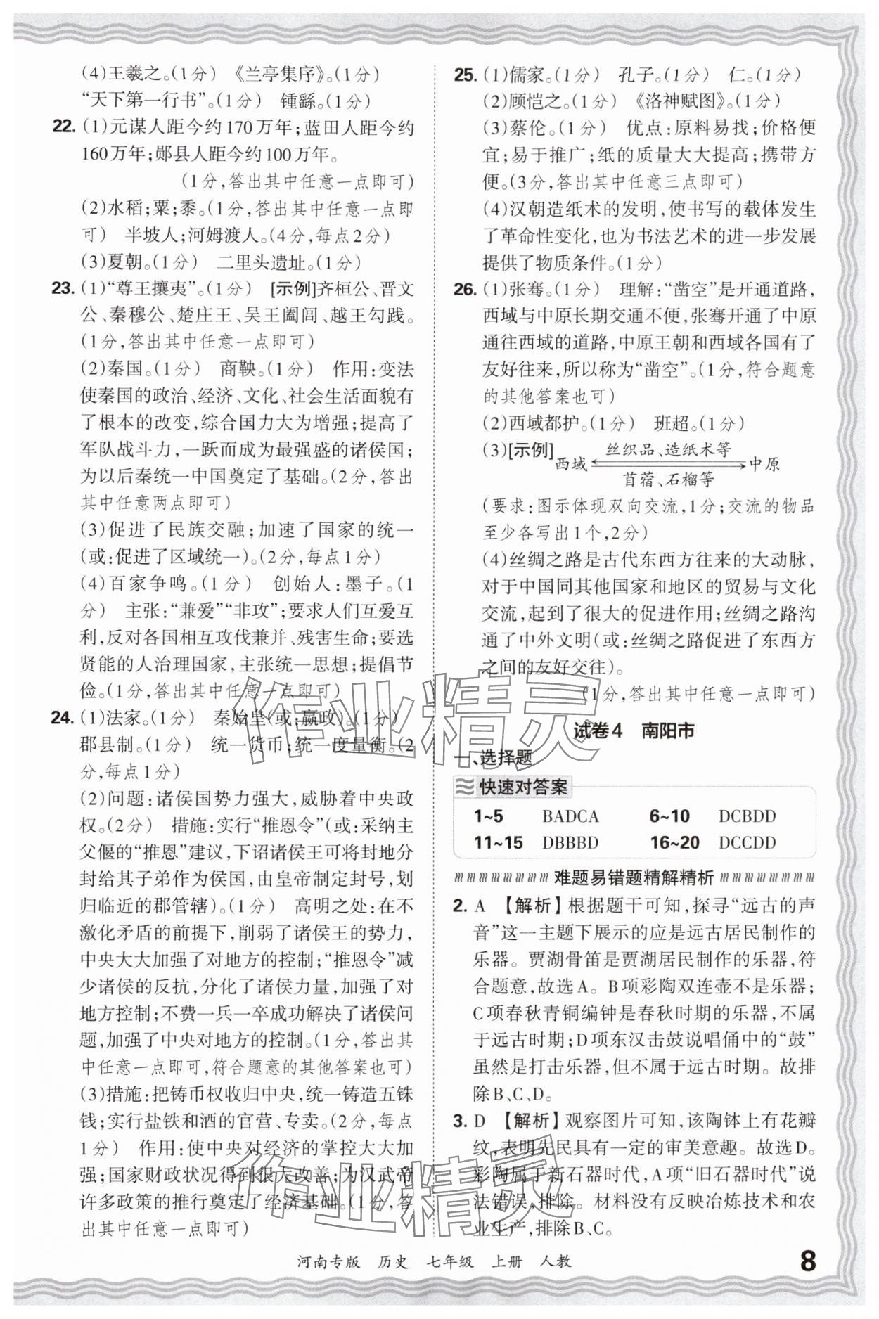 2024年王朝霞各地期末试卷精选七年级历史上册人教版河南专版