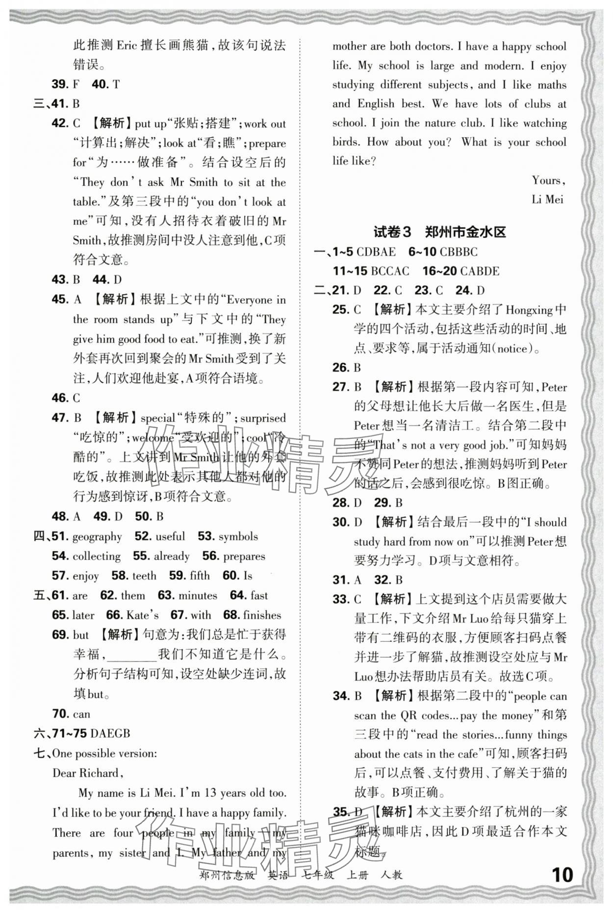 注:目前有些书本章节名称可能整理的还不是很完善,但都是按照顺序排列的,请同学们按照顺序仔细查找。练习册 2024年王朝霞期末真题精编七年级英语上册人教版郑州专版 答案主要是用来给同学们做完题方便对答案用的,请勿直接抄袭。